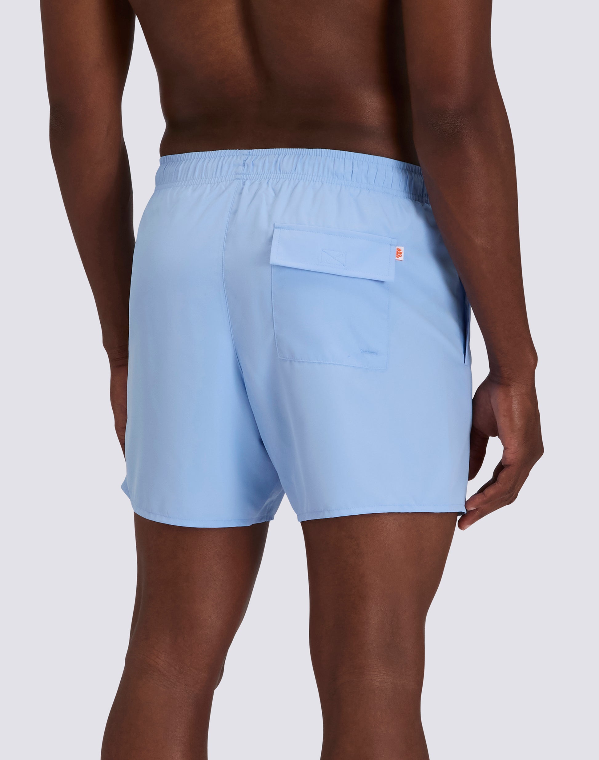 The ‘manopesca’ fabric is a type of finish that gives the fabric a particular softness and a velvety feel, similar to the surface of a peach. The softness contributes to a high level of comfort; the swimsuit drapes well on the body, following its shape without being restrictive. It is also very lightweight and tends to dry quickly. These characteristics of the fabric allow the swimsuit to adapt well to the body and offer a good fit. The matte or slightly shaded finish gives a more casual and relaxed look, ideal for the beach environment, particularly appreciated for prolonged use during hot summer days.