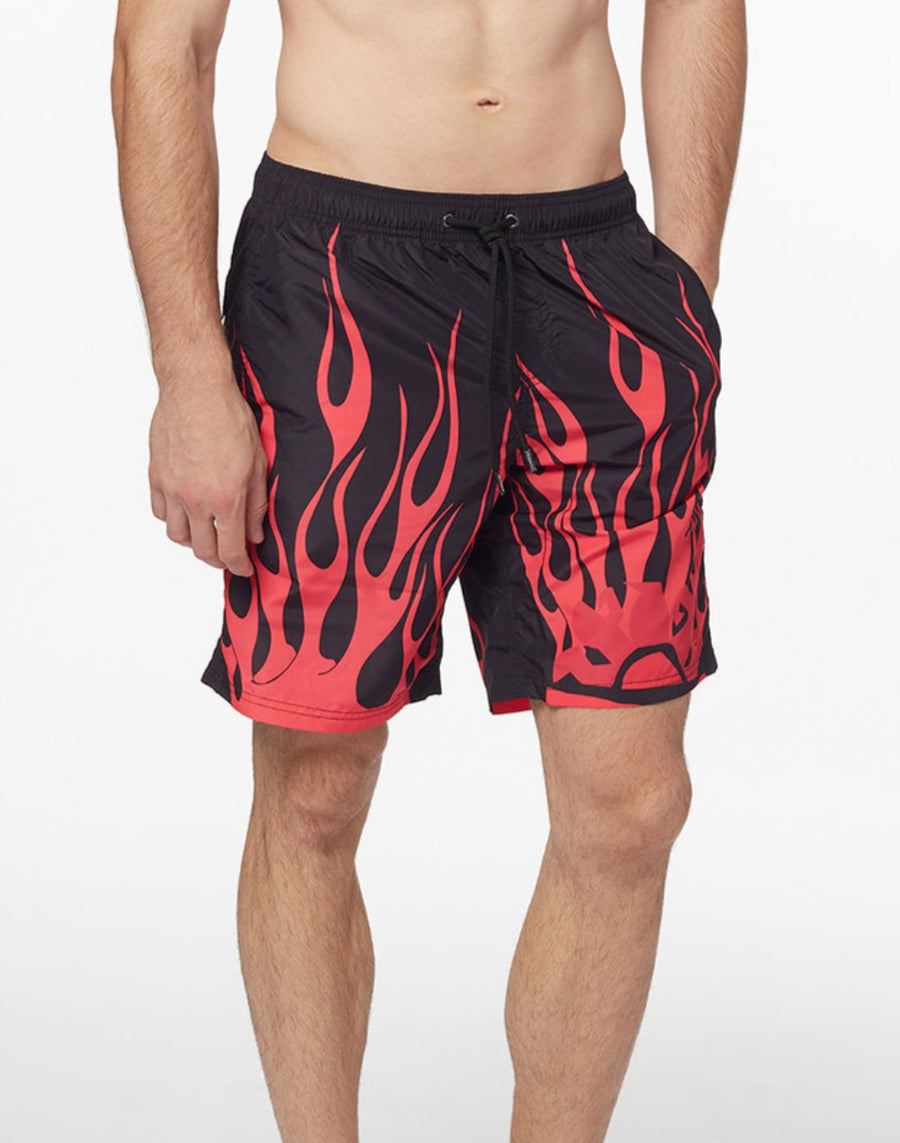 LONG BOARDSHORT WITH ELASTICATED WAIST ACID FLAME PRINT