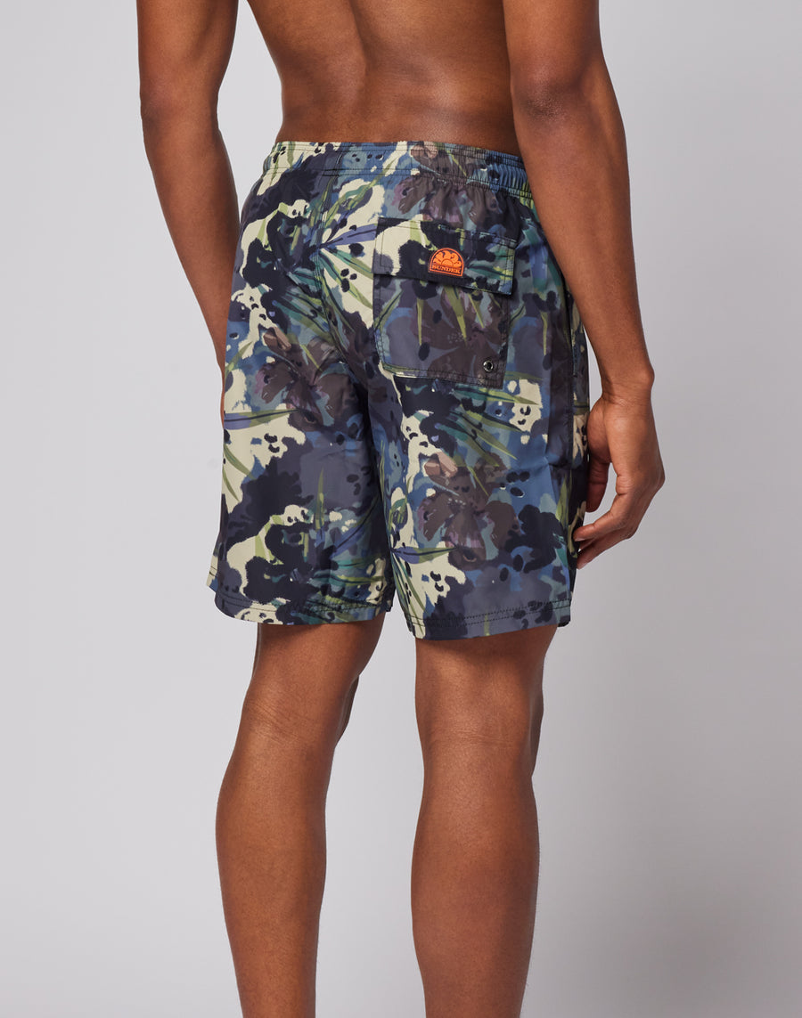 Ready to ride the next wave with this longline men's boardshort with elasticated waist and Spotty Jungle print. Made of light recycled polyester, it guarantees adherence and comfort thanks to the presence of the drawstring and the elastic waistband. Length 18”/46 cm (in size M).