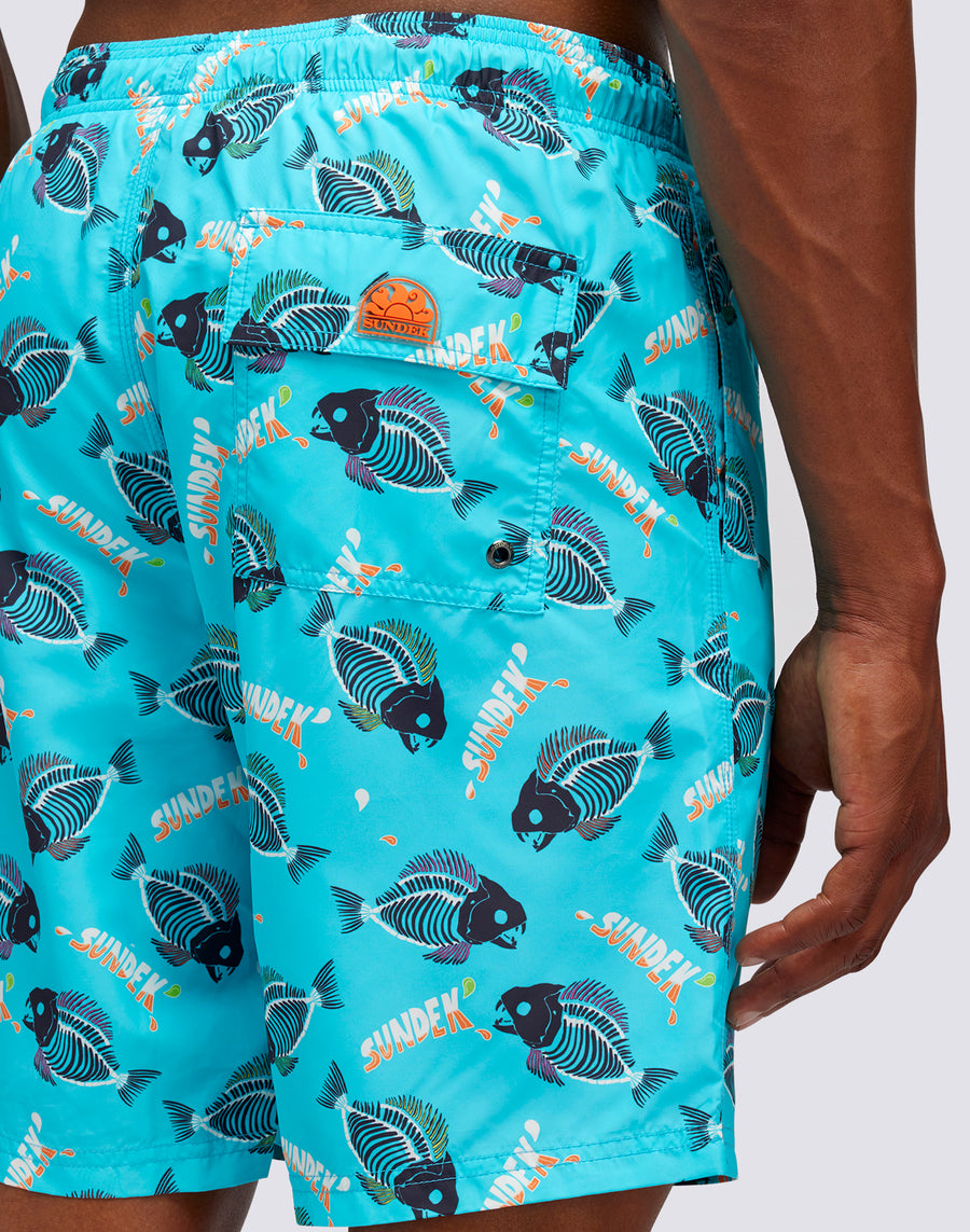 LONG ELASTIC WAIST SWIMSHORTS WITH SURFANHA PRINT