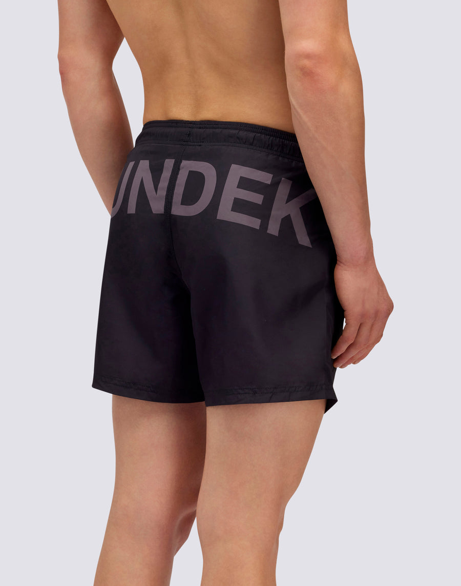 Express DNA Sundek. Solid color elastic waist short swimsuit with SUNDEK print on the back and logo on the side. The 3-needle stitching offers high resistance over time. Recycled polyester fabric.