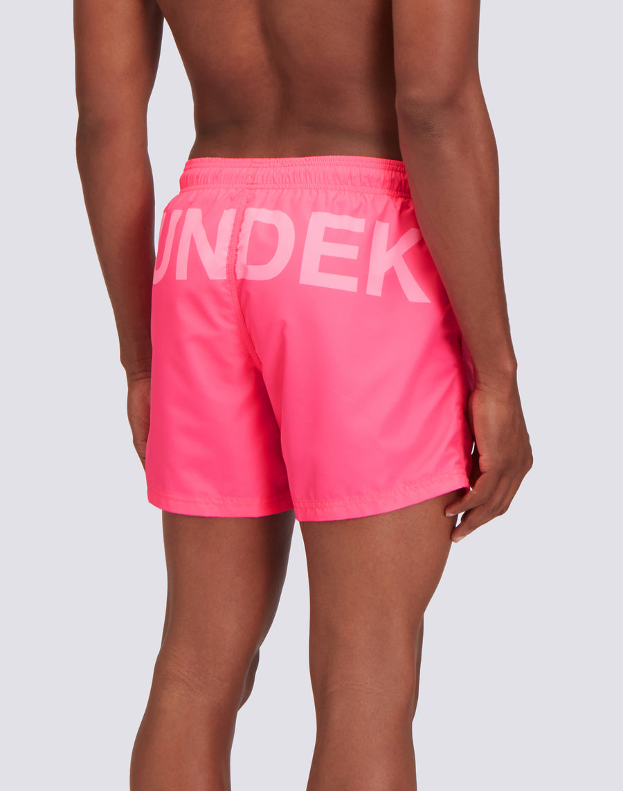 Express DNA Sundek. Solid color elastic waist short swimsuit with SUNDEK print on the back and logo on the side. The 3-needle stitching offers high resistance over time. Recycled polyester fabric.