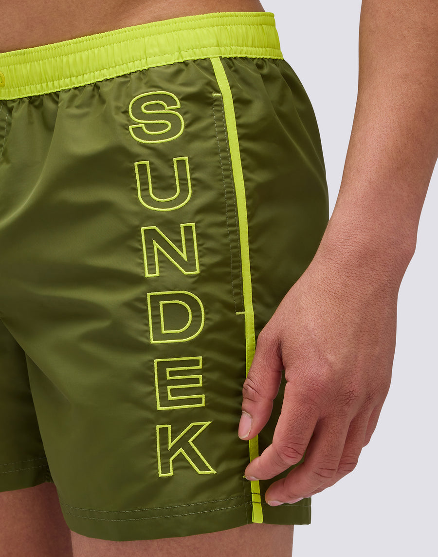 ICONIC TAFFETA ELASTICATED WAIST SHORT SWIMSHORTS WITH CONTRASTING PIPING