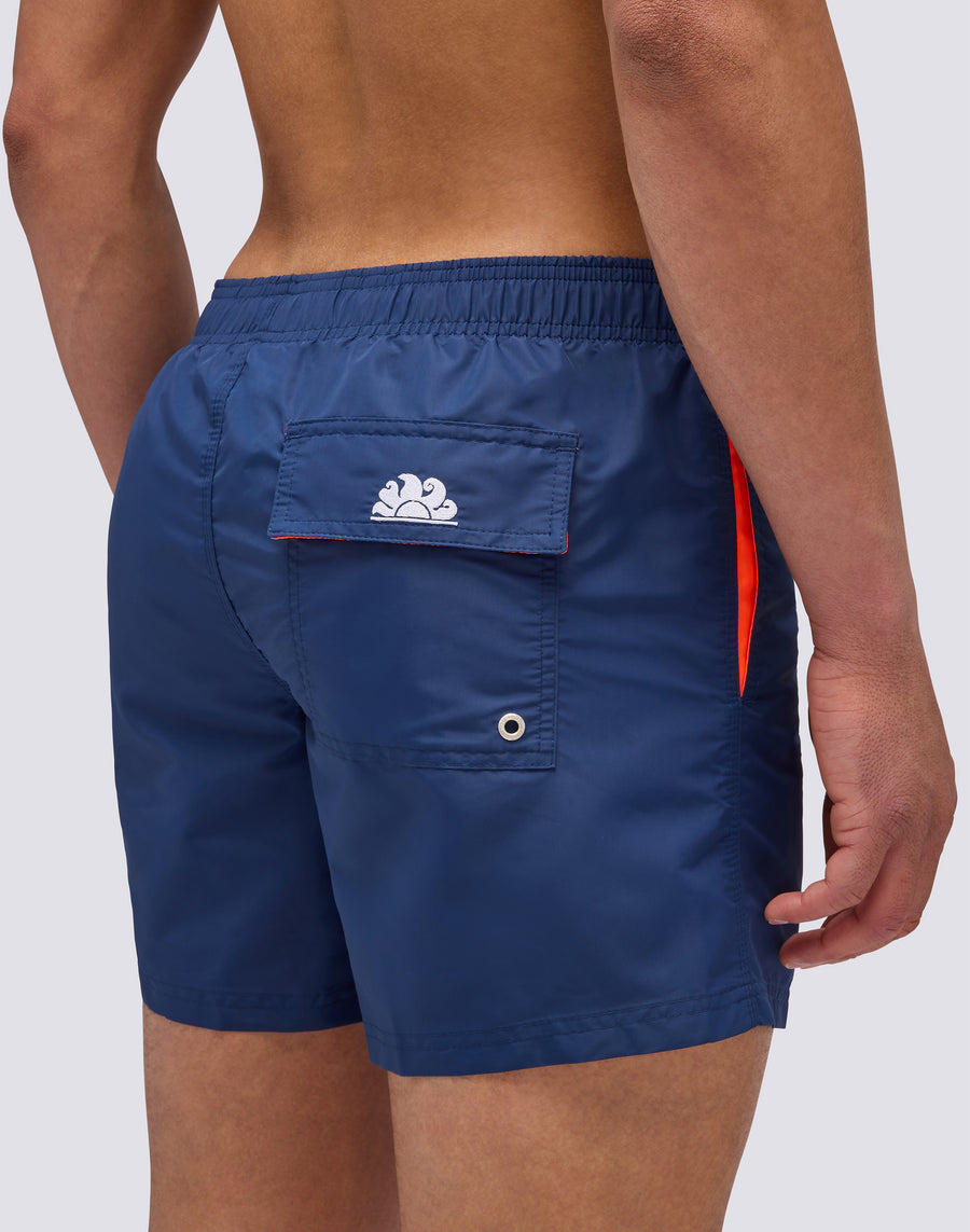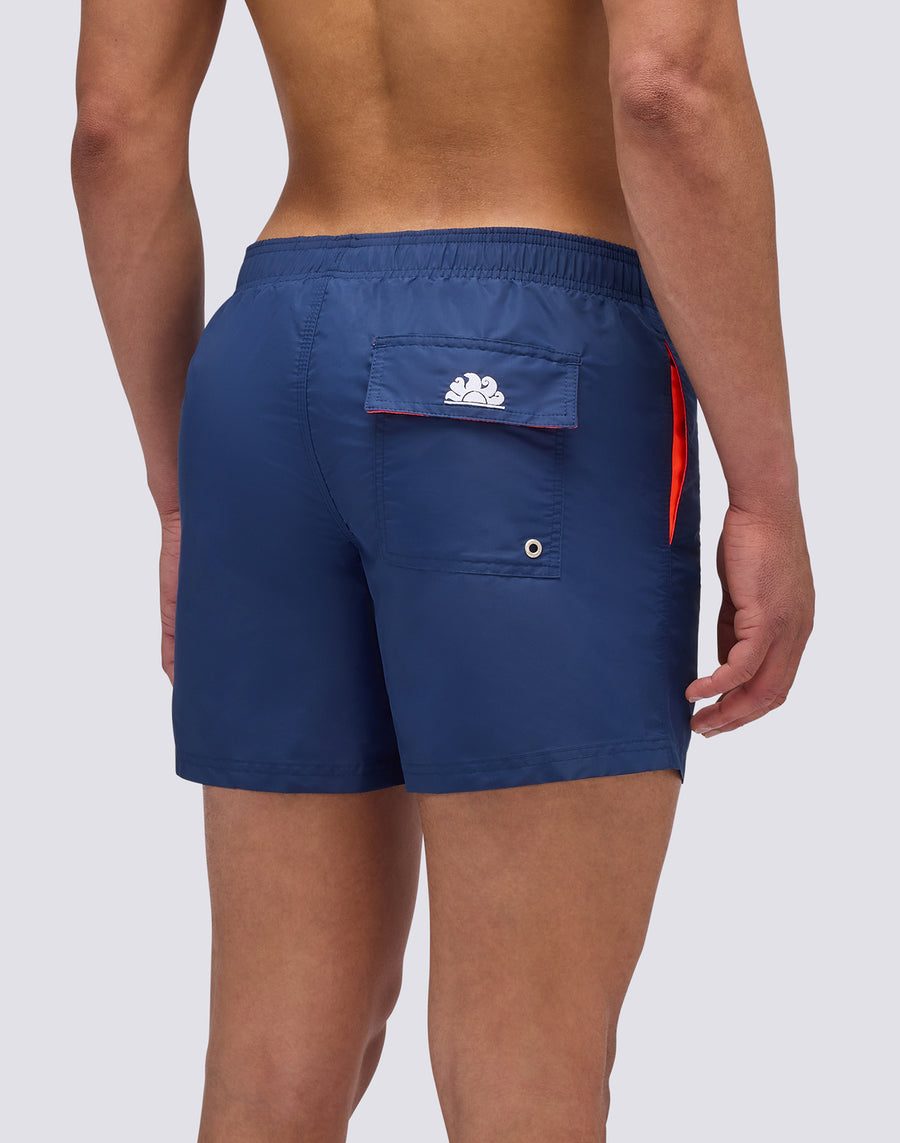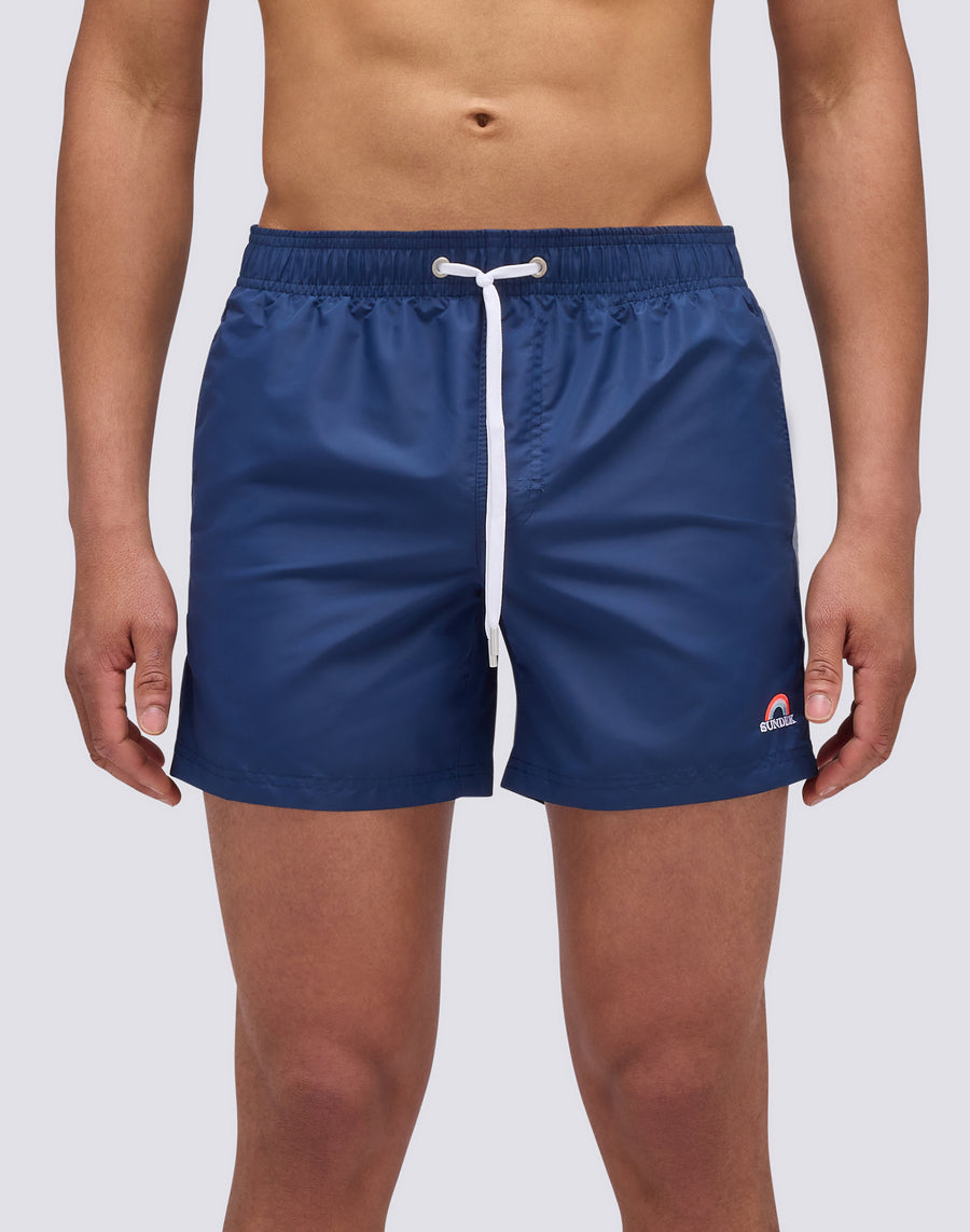 Refresh your beachwear wardrobe with this short boardshort, perfect for your days at the beach or pool. With its quick-drying fabric and contrasting inserts, this men's swimming costume guarantees an iconic look all summer long. The embroidered rainbow detail adds an extra touch of style.