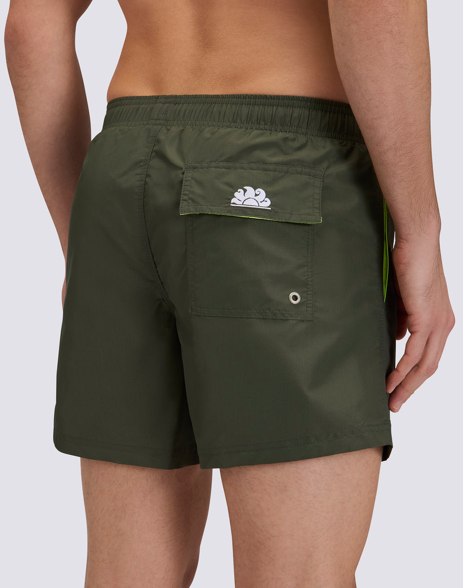 ICONIC TAFFETA ELASTICATED WAIST SHORT SWIMSHORTS WITH RAINBOW EMBROIDERY