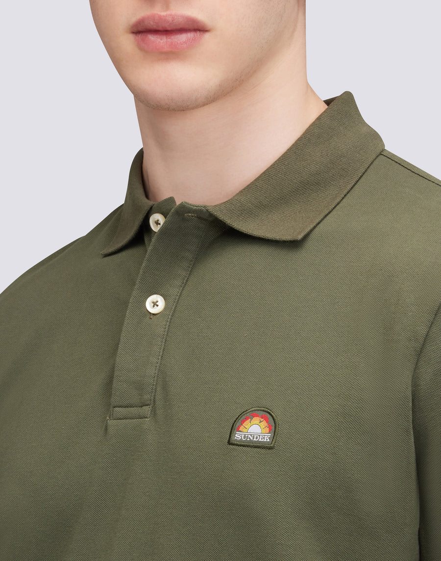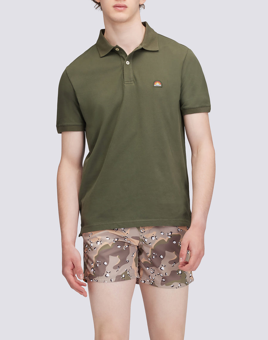 STRETCH PIQUET COTTON POLO SHIRT WITH RAINBOW PATCH