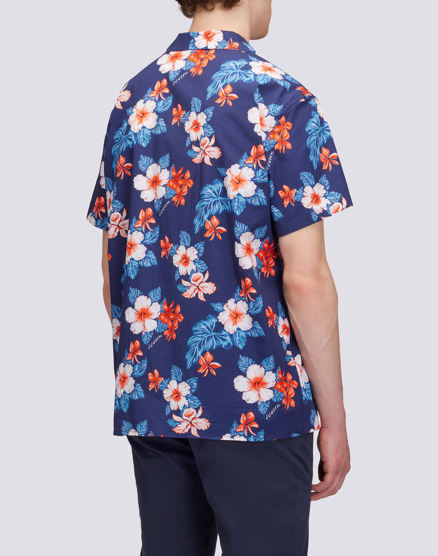Short sleeved printed bowling shirt, made of cotton fabric.