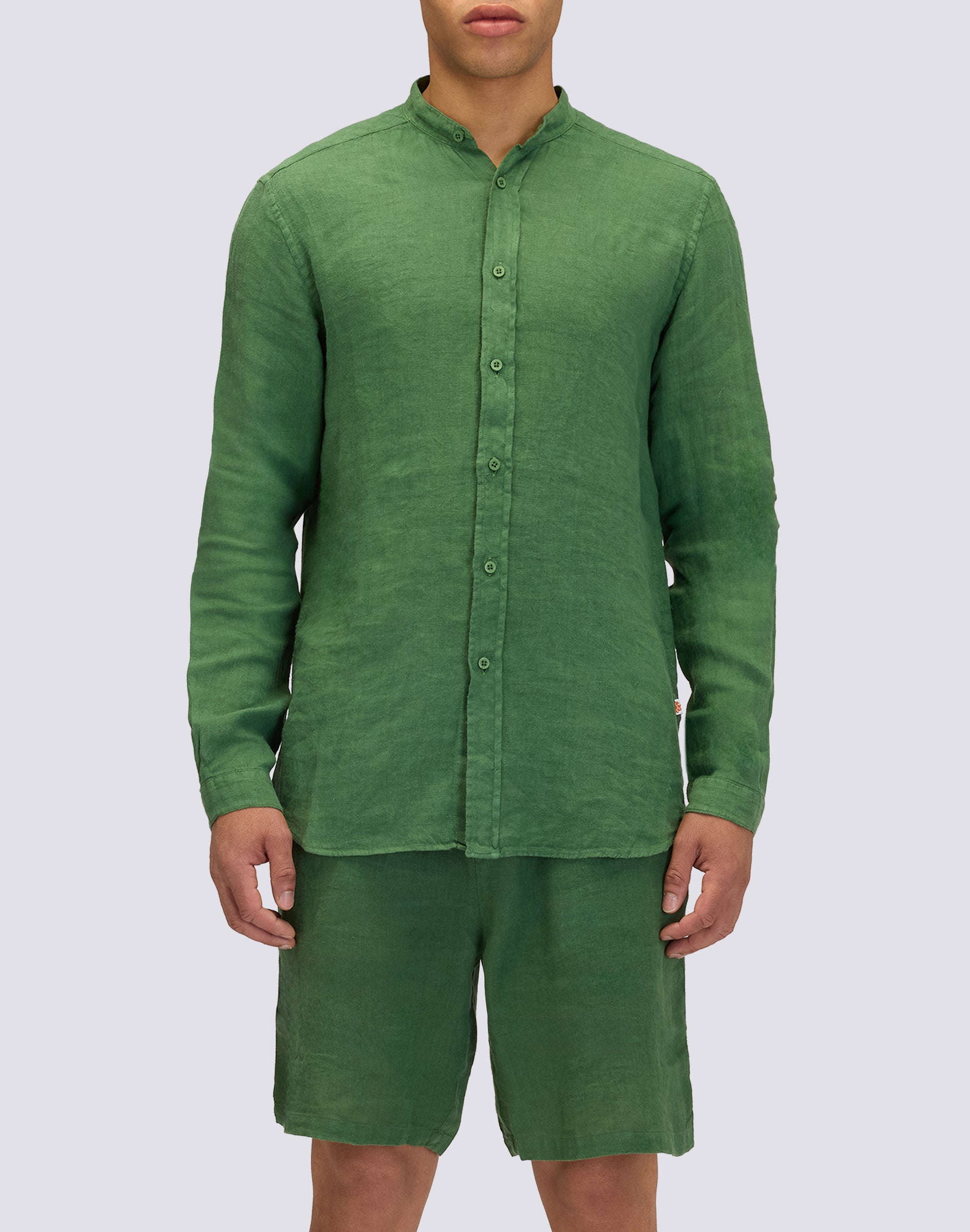 GARMENT DYED LINEN SHIRT WITH MANDARIN COLLAR