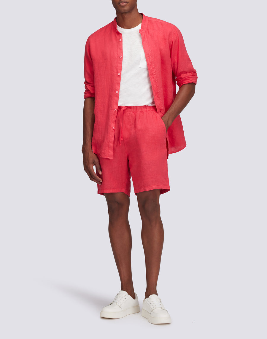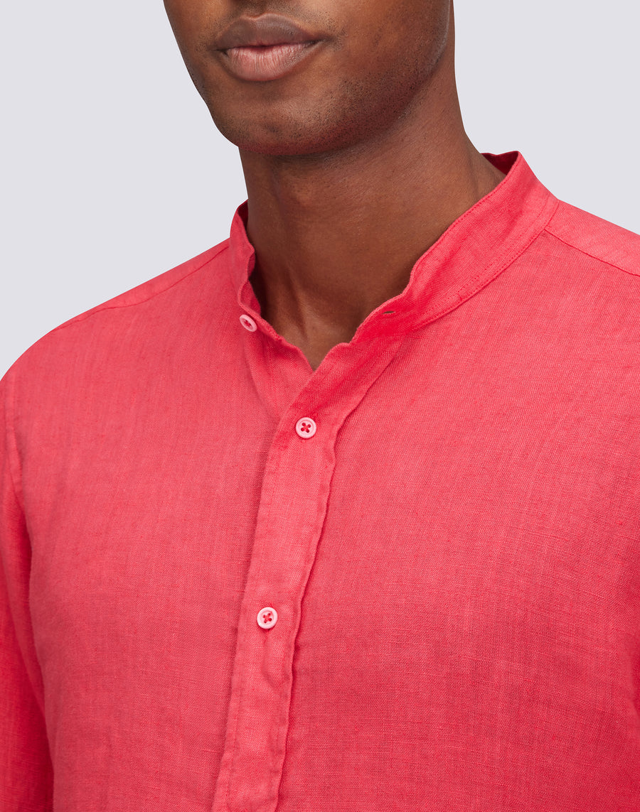 GARMENT DYED LINEN SHIRT WITH MANDARIN COLLAR