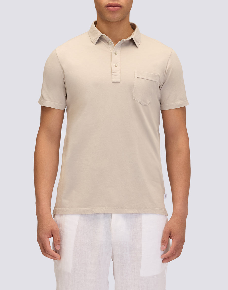 Elegant men's short-sleeved polo-style T-shirt with collar and breast pocket. Regular fit.