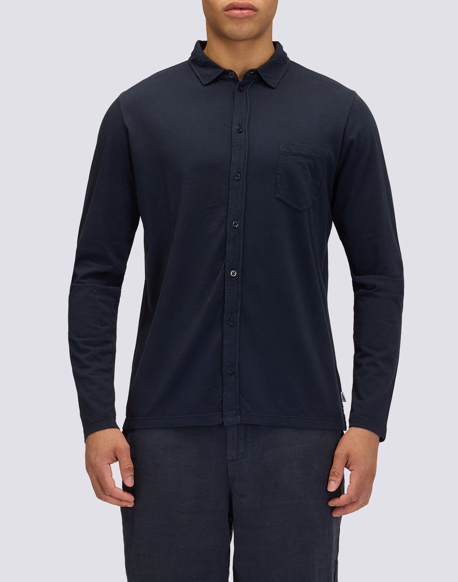 Men's long-sleeved cotton jersey shirt in garment dyeing. Regular fit.