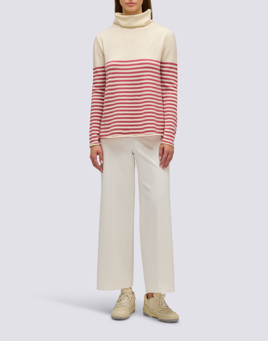 Women's twill trousers with a semi-elastic waist, clean front, and hidden side zip. Flowing silhouette and straight leg.