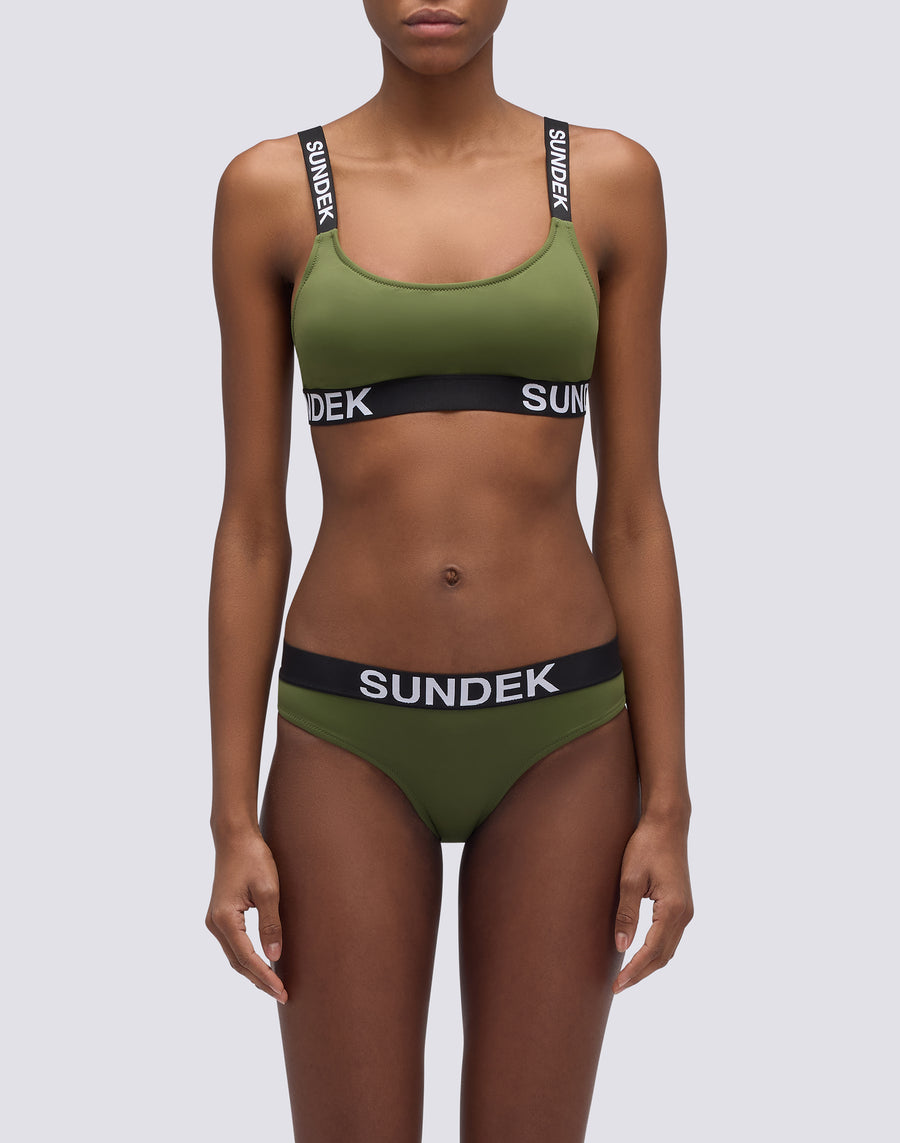 The high-performance fabric offers excellent freedom of movement, while the jacquard elastic with contrasting logos adds a sporty flair: pair these swim briefs with the matching top to create a bold look that is sure to turn heads.