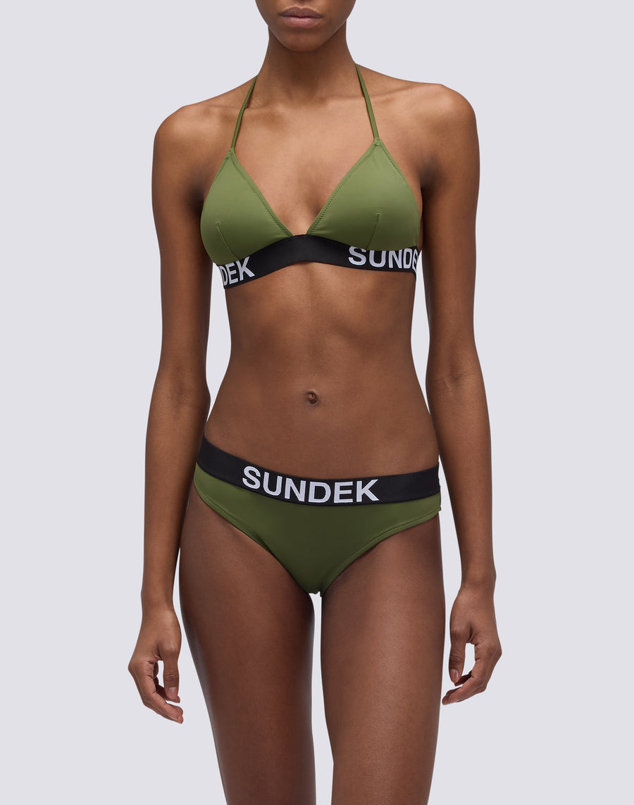 Center back cut, SUNDEK jacquard motif on the elastic band