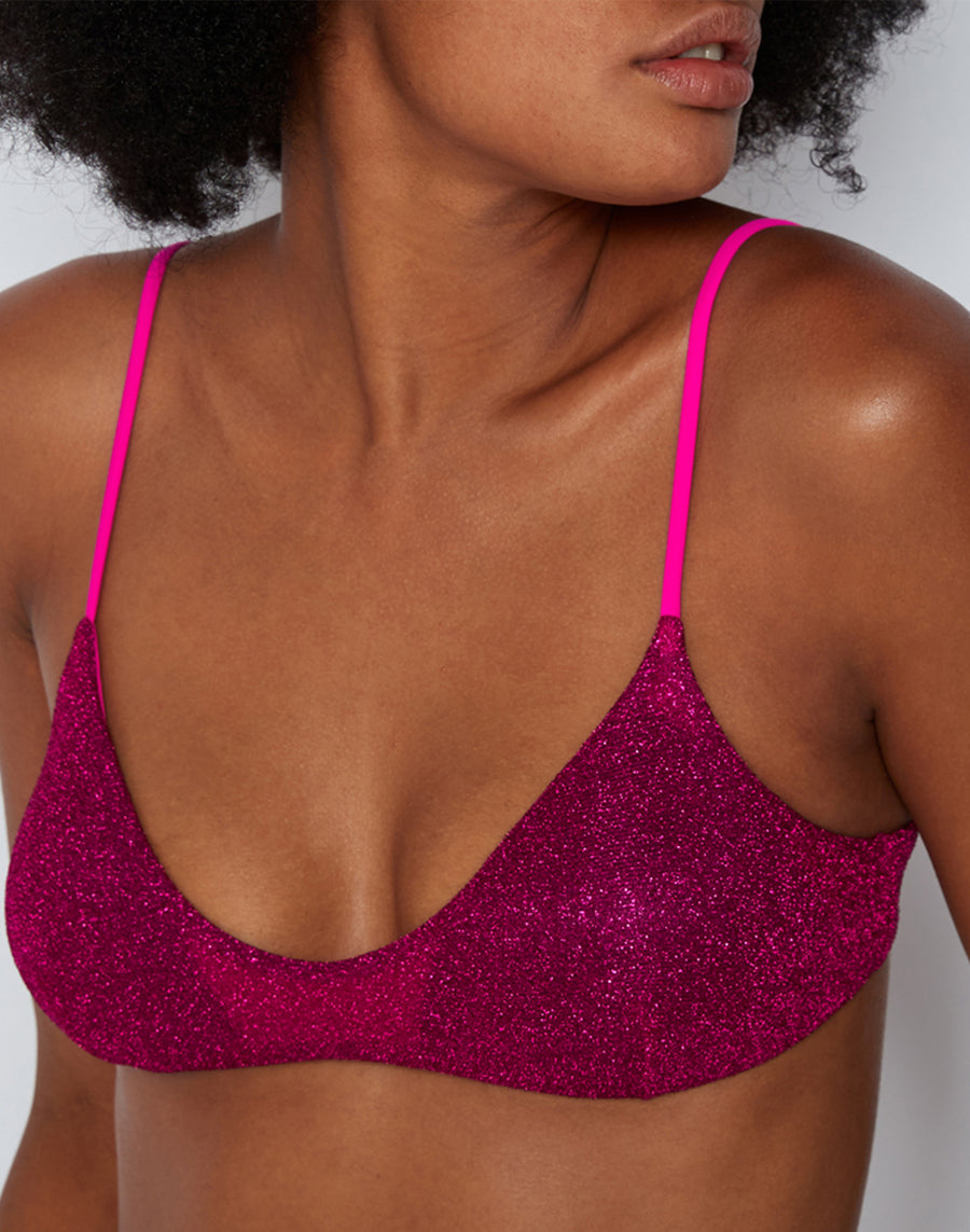 Comfortable, trendy and eye-catching. This lurex bralette top features padded cups with ruching in the centre for a flattering look. Pair it with the matching briefs for an ensemble that is guaranteed to turn heads.