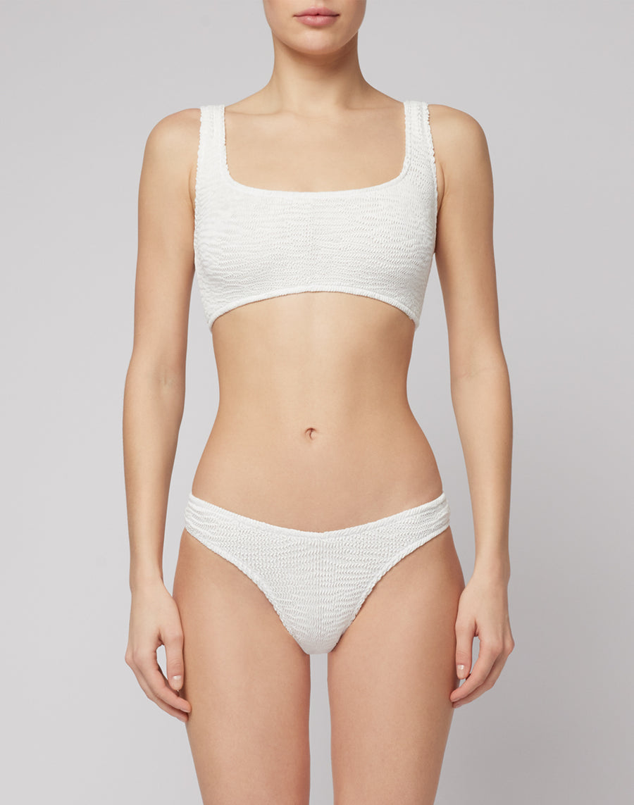Add a sporty touch to your beach look with this tubular embossed fabric bra top, which gives ample freedom of movement and ensures maximum comfort.