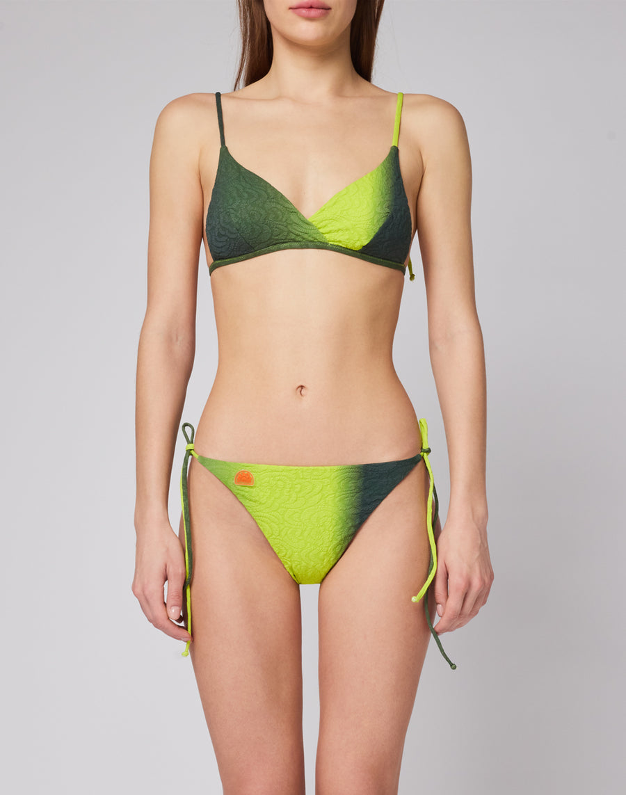 Play with the nuanced color tones of this crossed bralette bikini top with adjustable ties. Briefs sold separately.