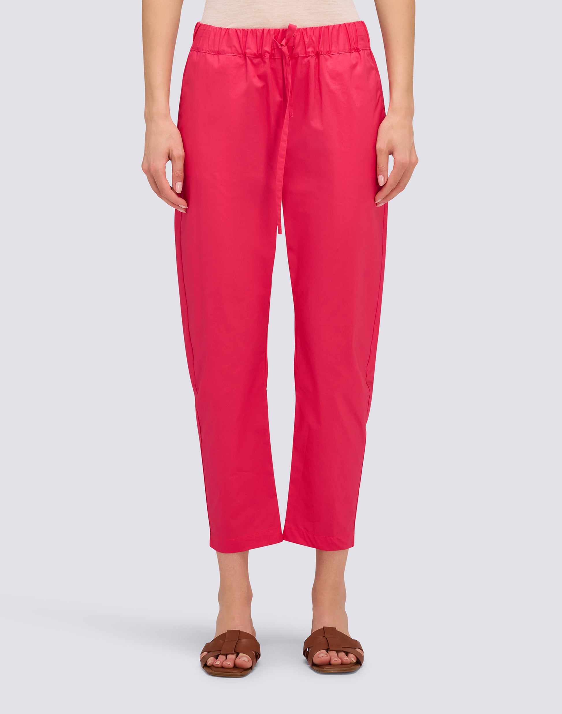 Women's long trousers in regular fit poplin and cigarette cut. Equipped with an adjustable waist and side pockets. Perfect for spring or summer evening looks. Can be worn with t-shirts, tops or blouses.