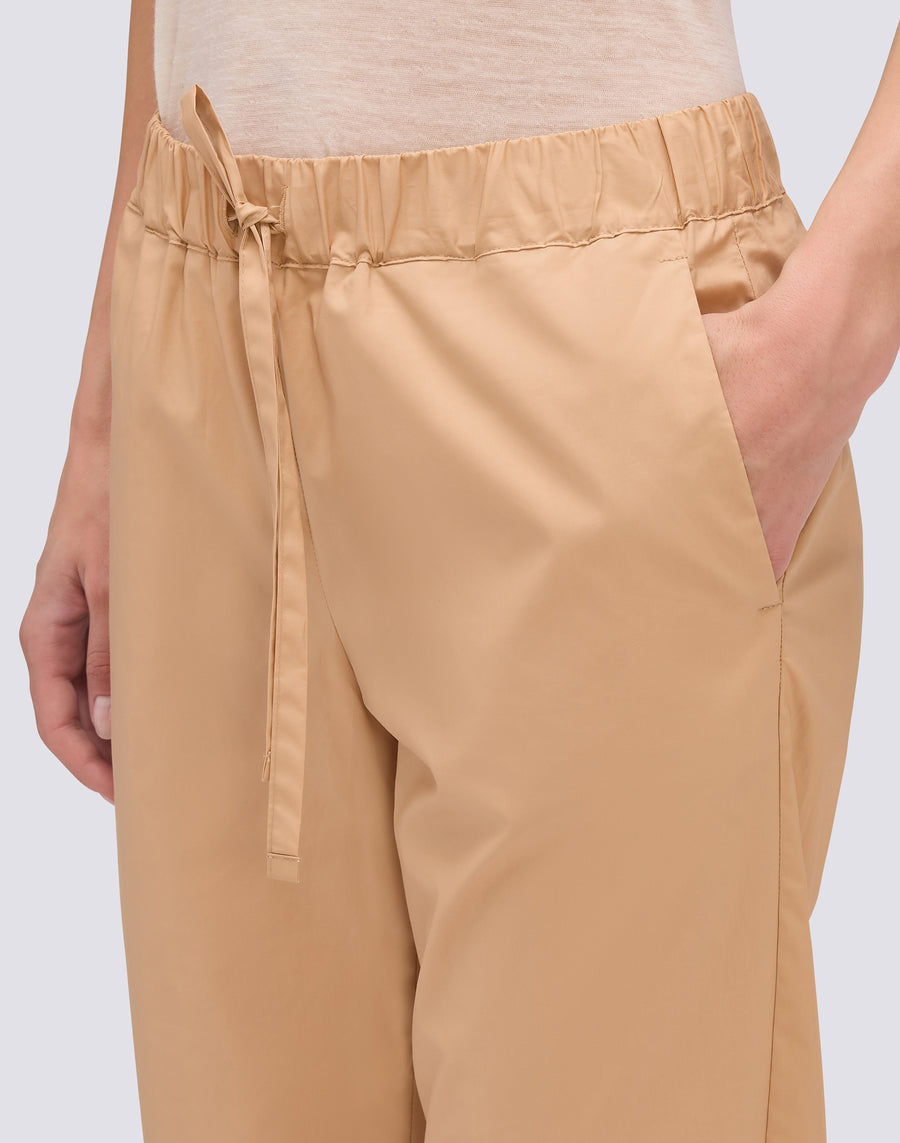 Women's long trousers in regular fit poplin and cigarette cut. Equipped with an adjustable waist and side pockets. Perfect for spring or summer evening looks. Can be worn with t-shirts, tops or blouses.