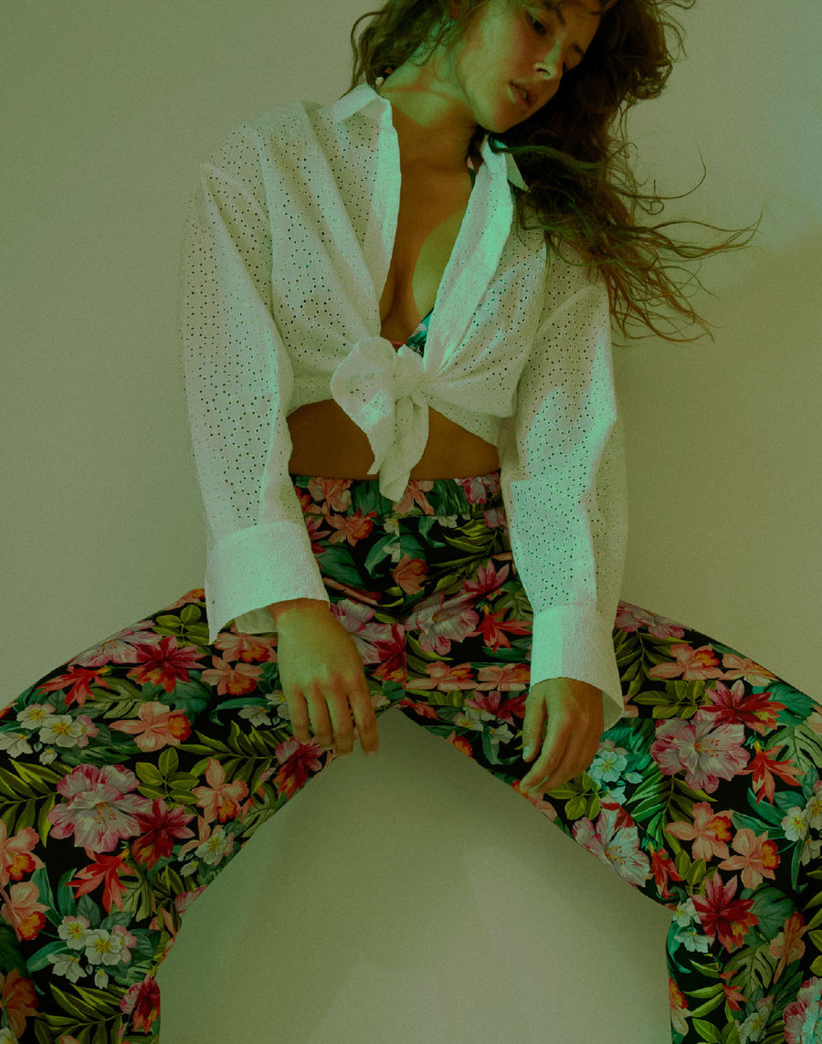 The floral-themed print characterizes these wide trousers in soft cotton. Fresh and comfortable, they are ideal to combine with the coordinated shirt. Give life to sophisticated and stylish looks.