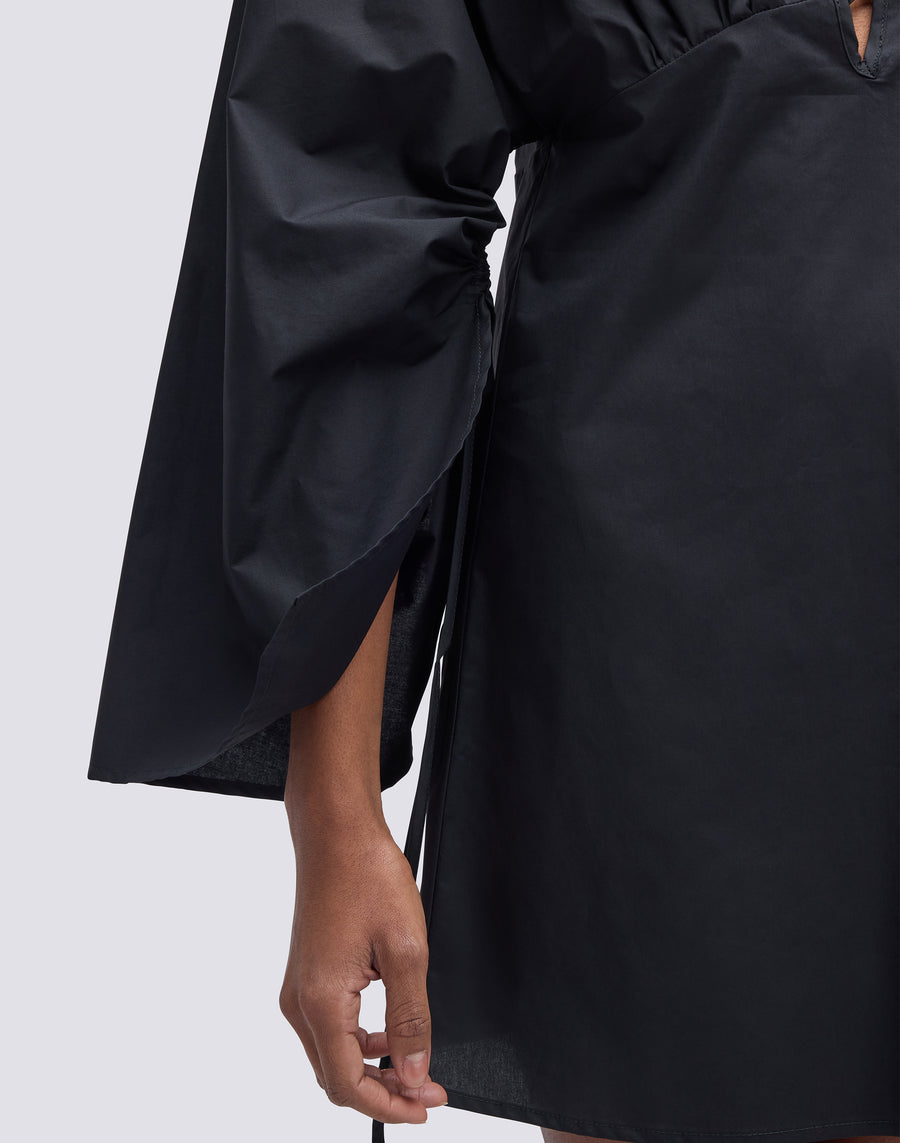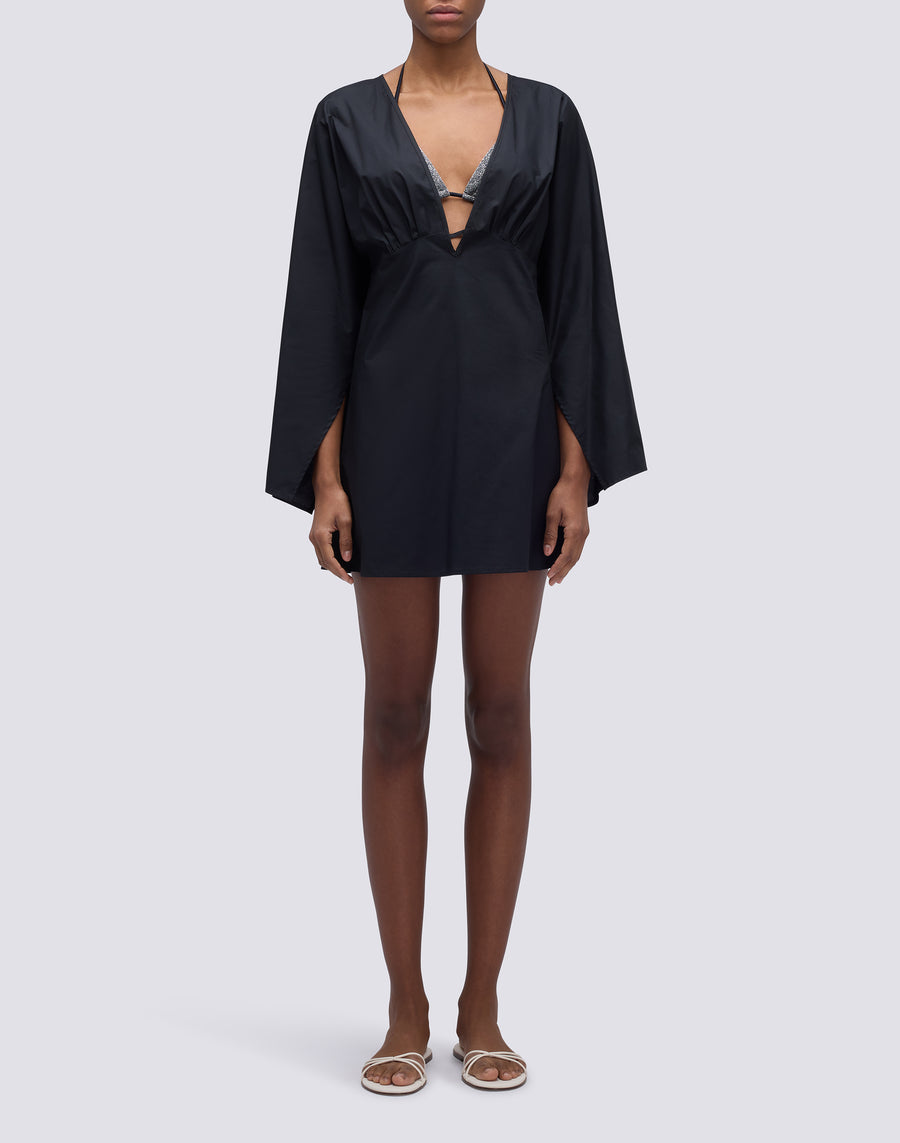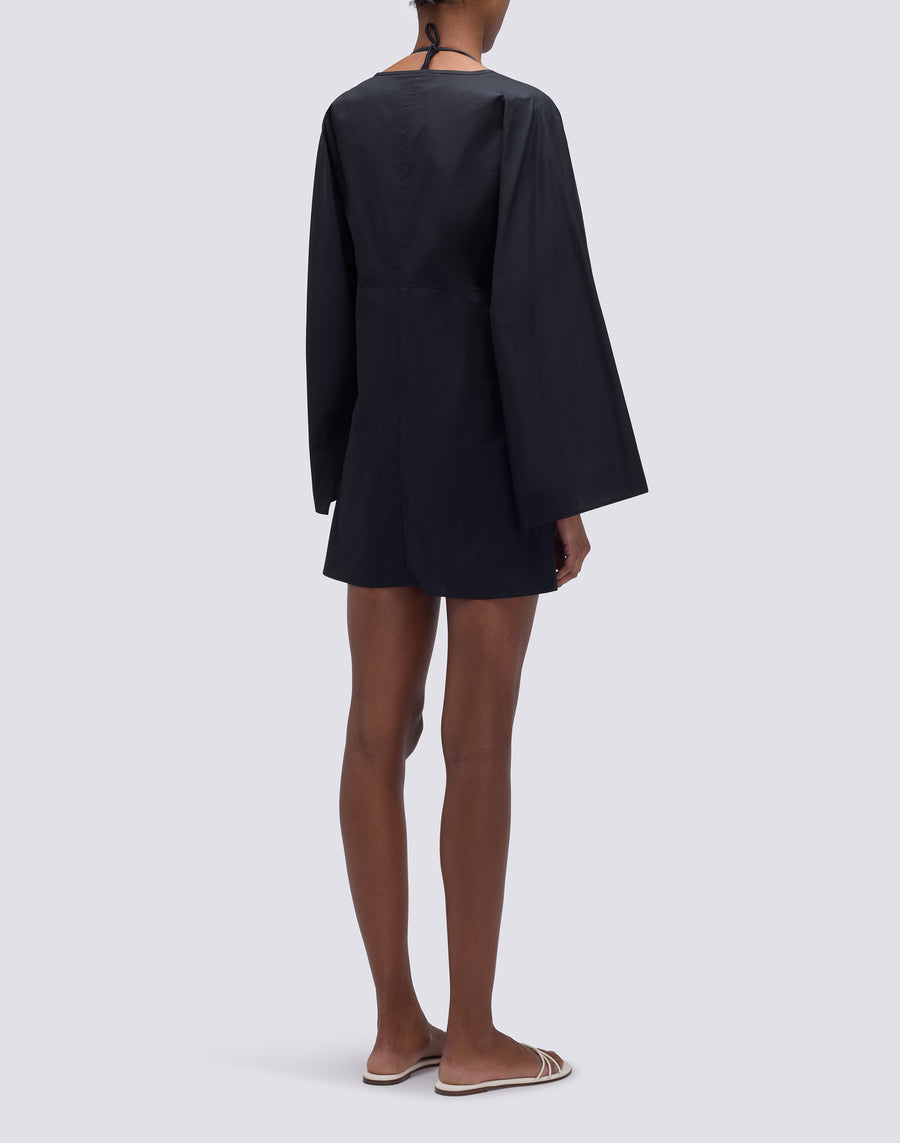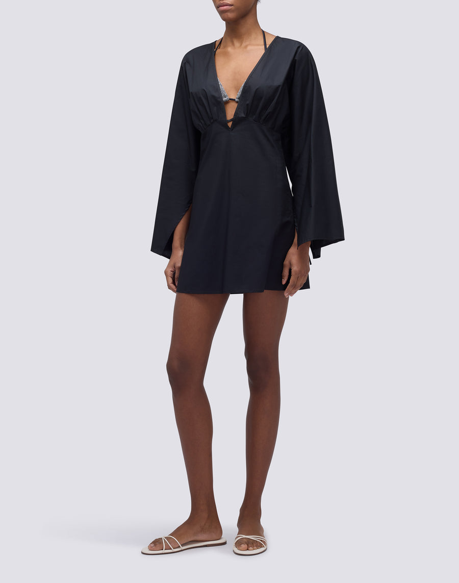 If you are looking for something different for your summer outfits, opt for this short poplin dress with long sleeves, a cut below the bust and a deep V-neck. You won't go unnoticed!