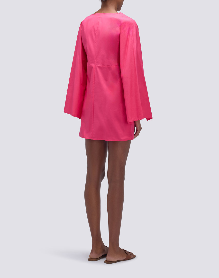 If you are looking for something different for your summer outfits, opt for this short poplin dress with long sleeves, a cut below the bust and a deep V-neck. You won't go unnoticed!