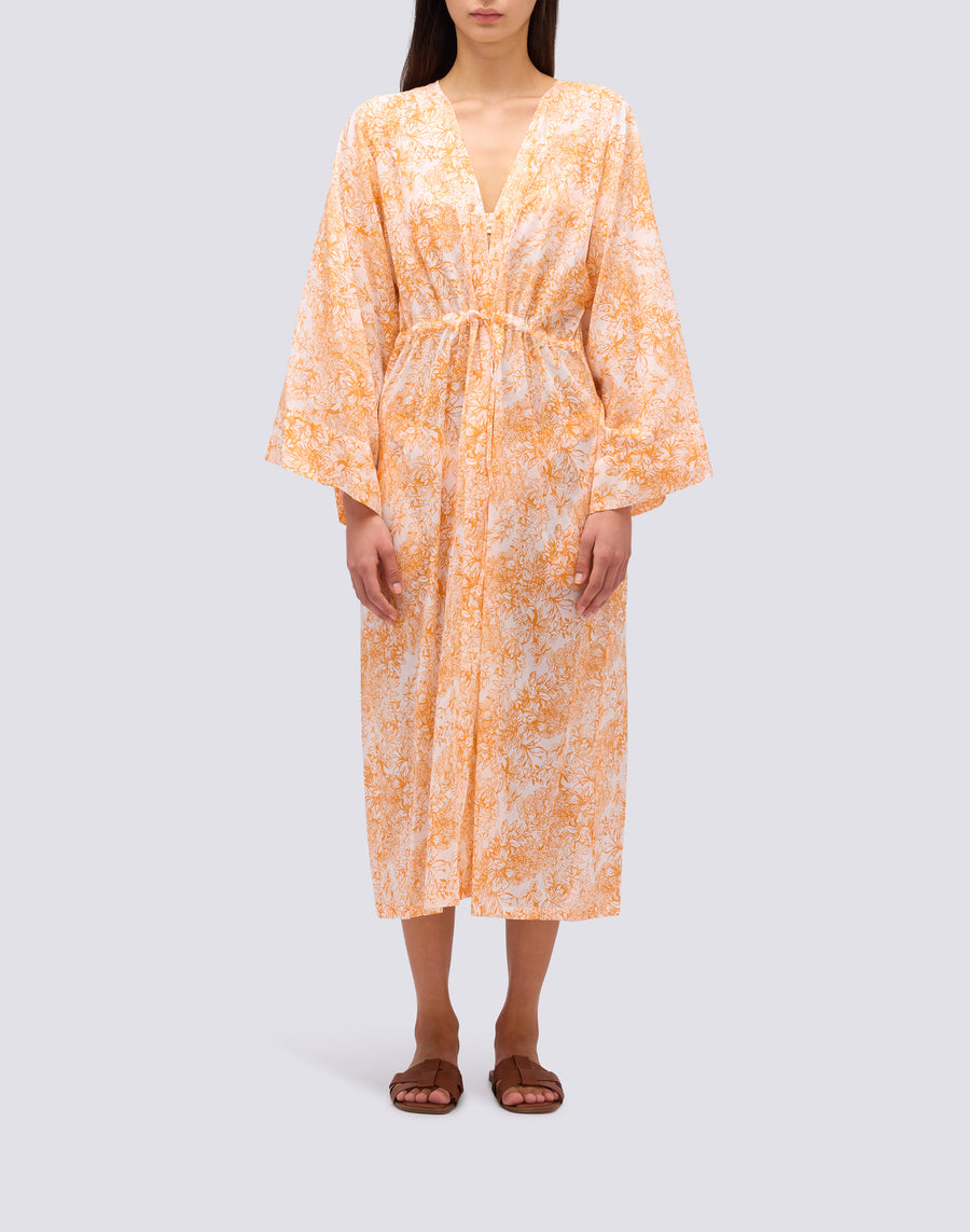 FLEUR DE JOIE PRINT LONG KIMONO DRESS