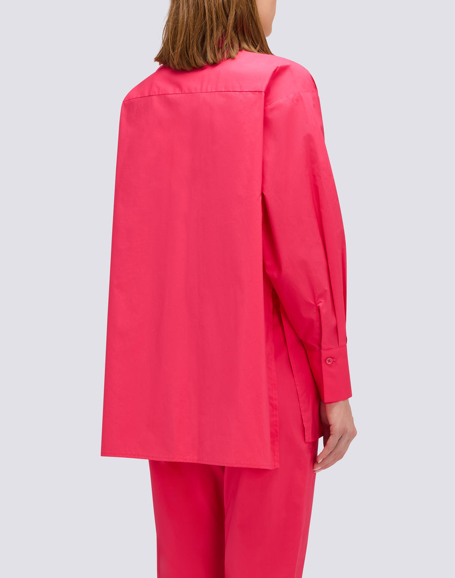 Cotton popelin over fit shirt with front pocket and side vents. A garment with a simple design, but with stylish details. A must-have for your Spring Summer wardrobe!