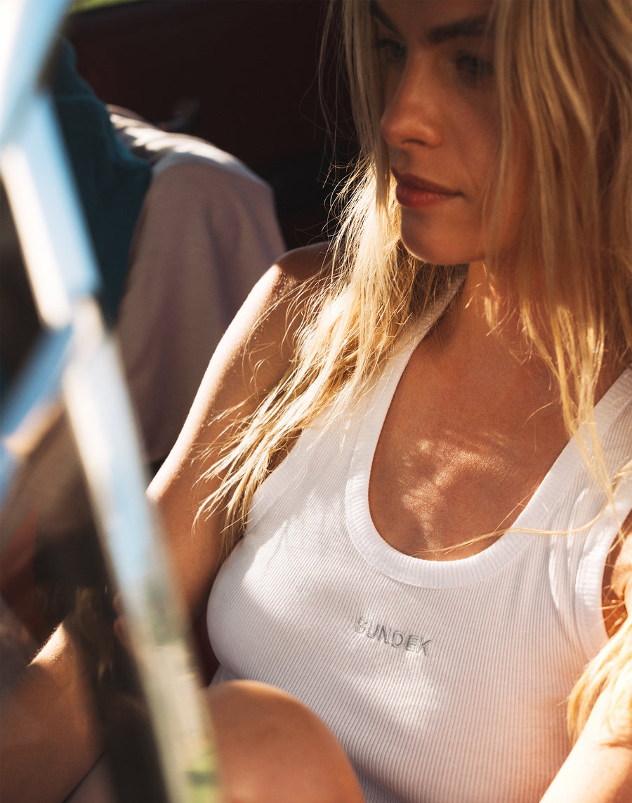 Our ribbed tank top is perfect for those who want a casual but trendy style. The regular fit will guarantee you comfort and practicality, while our embroidered logo will add a touch of originality to your look.