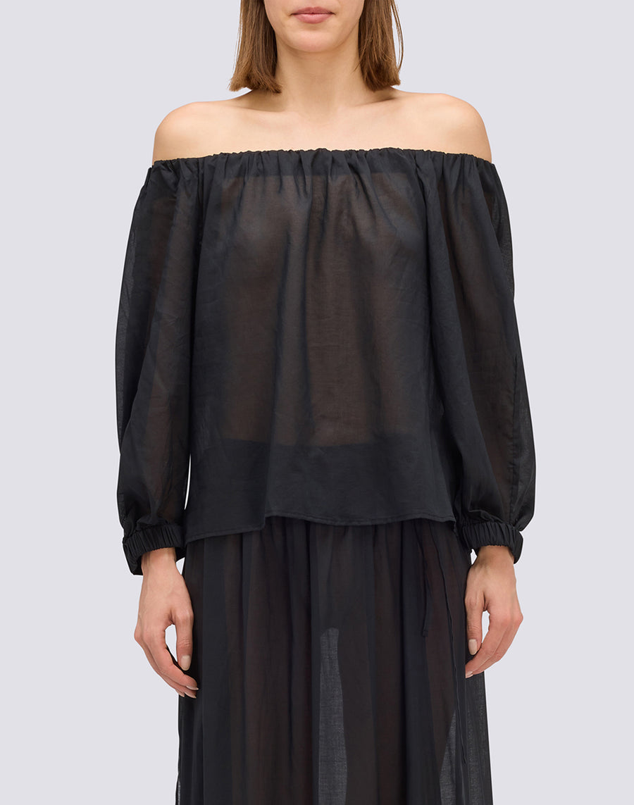 COTTON VOILE BLOUSE WITH BOAT NECKLINE