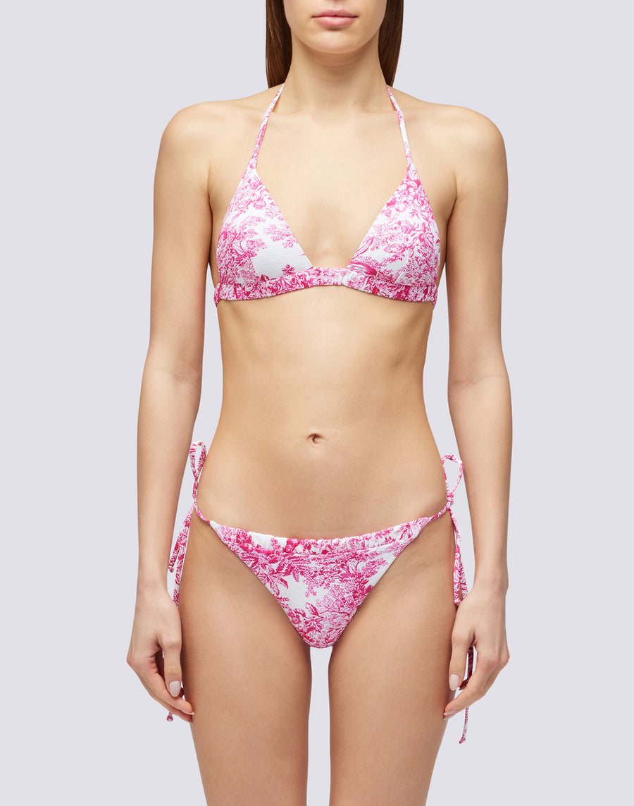 The Bianca piquet briefs with Toile De Jouy print are current and elegant. The gathered detail at the waist makes it even more precious. To be completed with its matching top.