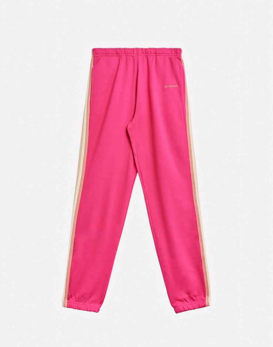 Essential and comfortable, these gauzy fleece trousers feature an elasticated hem, an elasticated waistband and a lively rainbow detail at the sides. Perfect everyday design.