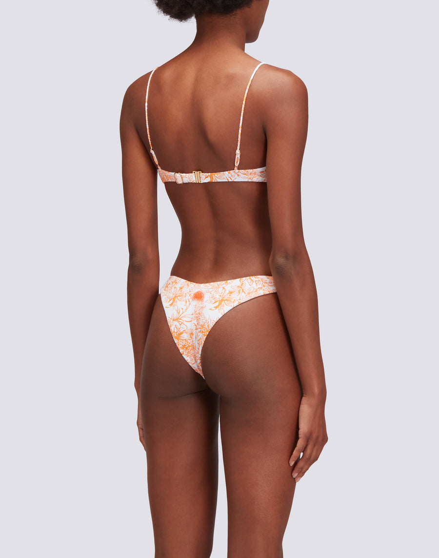 Romantic bralette in Fleur de Joie pattern with underwire and adjustable ties. To be matched with the matching briefs to create a bikini with a refined style.