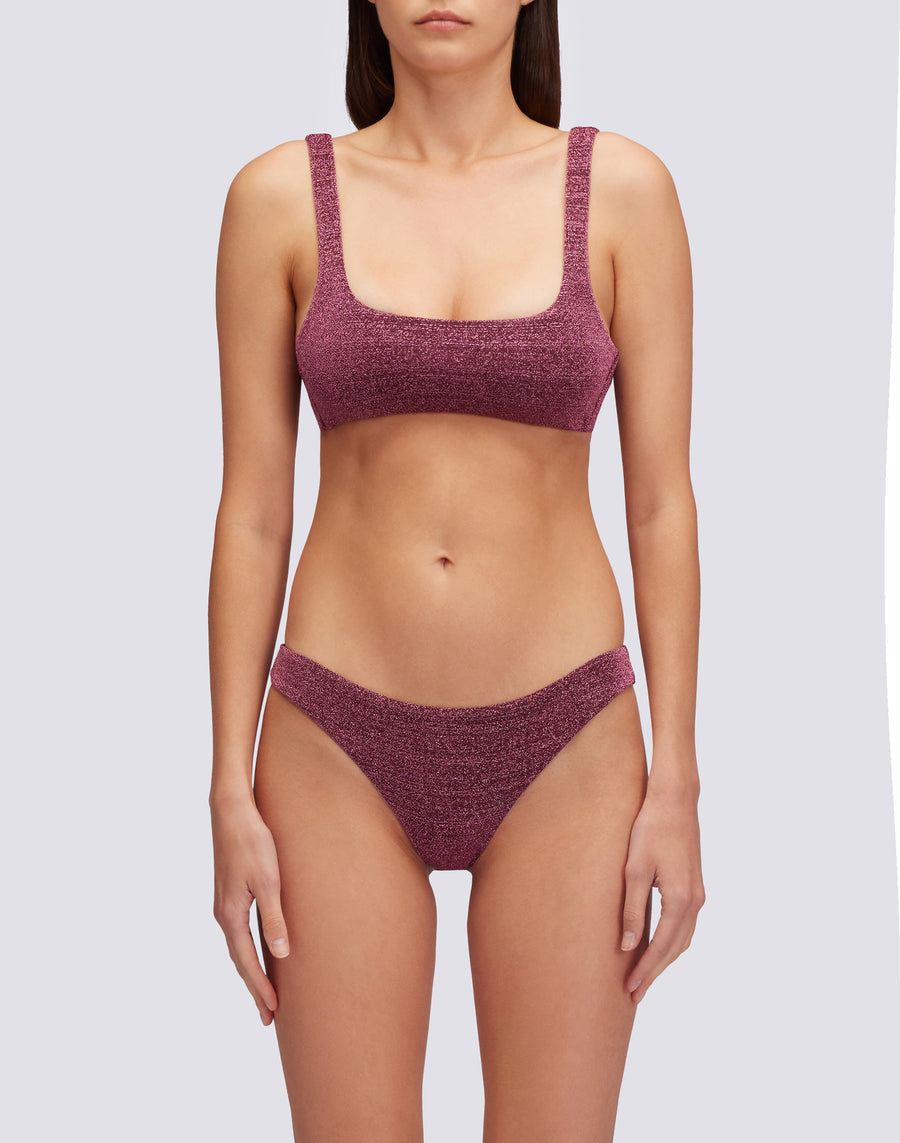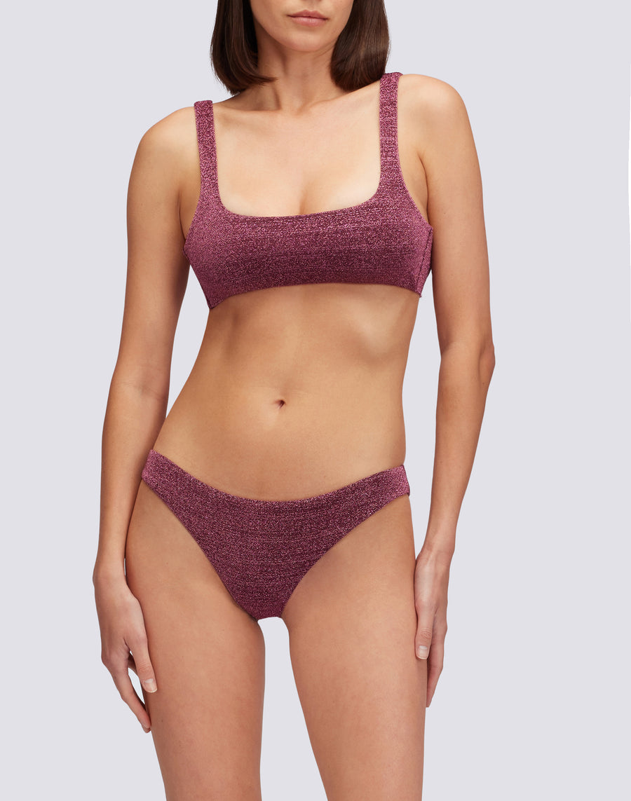 Elegant and bright lurex culotte bikini bottom to be coordinated with the top for a chic and sophisticated look.