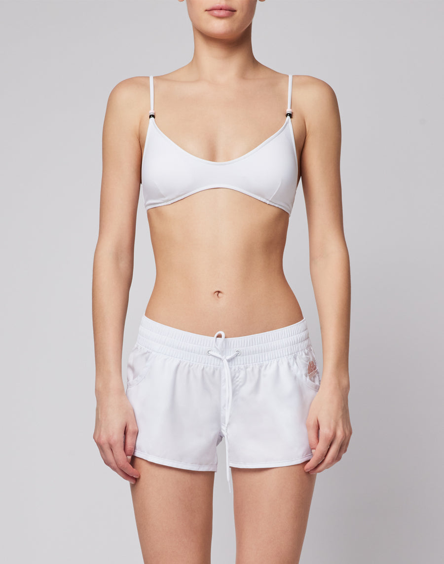 Women's short, low-waisted shorts to wear for swimming or over swimwear. If you love women's beach shorts, pack this short model with elasticated waist and drawstring, light and comfortable to wear every day on the beach and perfect for swimming.