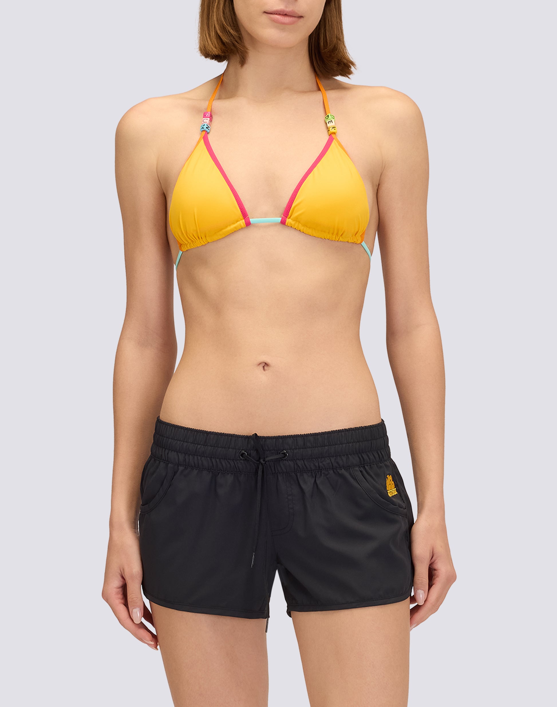 Made of eco-friendly Repreve® fabric, this women's short-suit is available in various colours. The back features the unmistakable Sundek rainbow for a unique style.