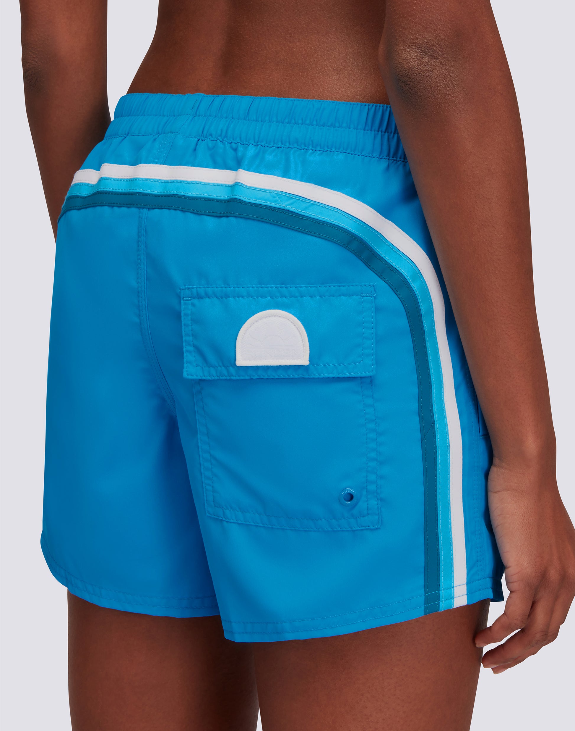 With the Coast women's boardshort you can enjoy a perfect fit thanks to the elasticated waistband, without sacrificing style. The iconic Sundek rainbow on the back makes it a must-have piece of your beachwear.