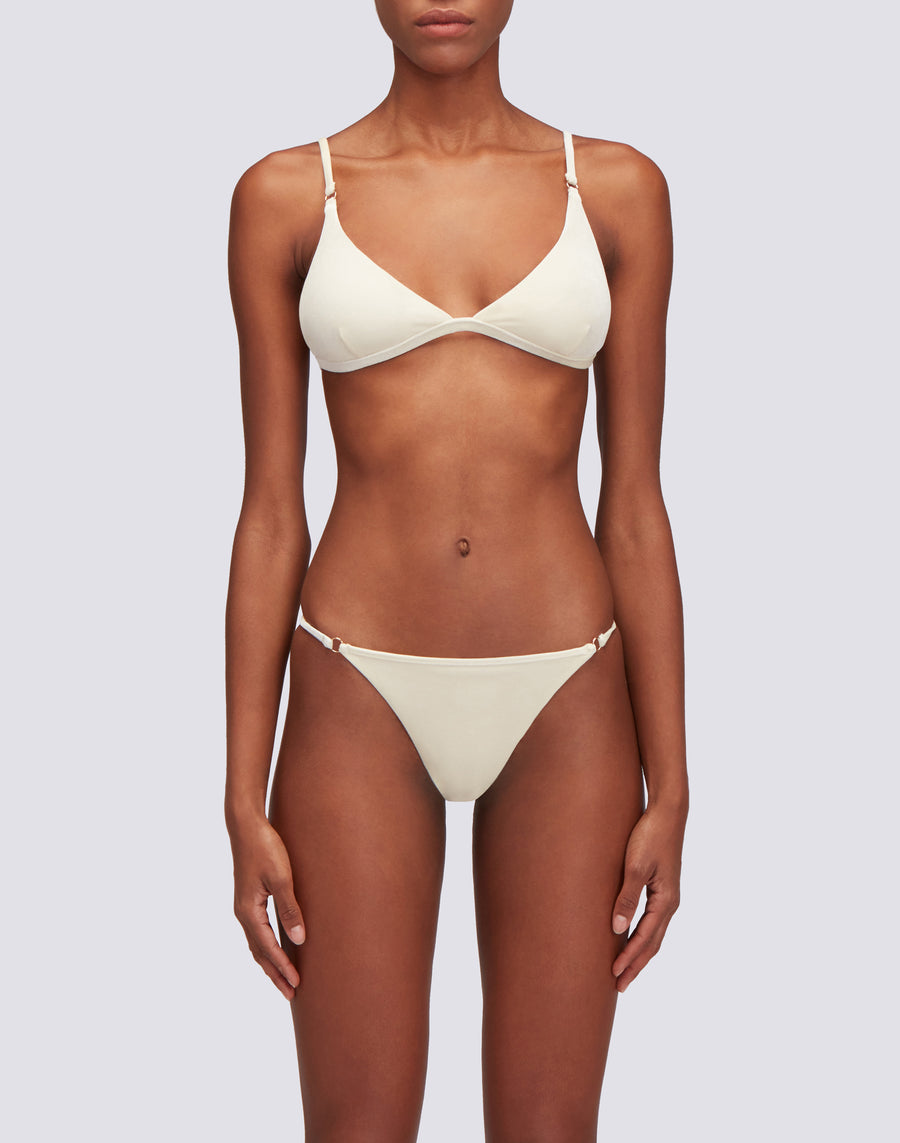 Velvet Andress bralette top with gold decorations on the straps. Elegant and bright, perfect for shining on the beach.