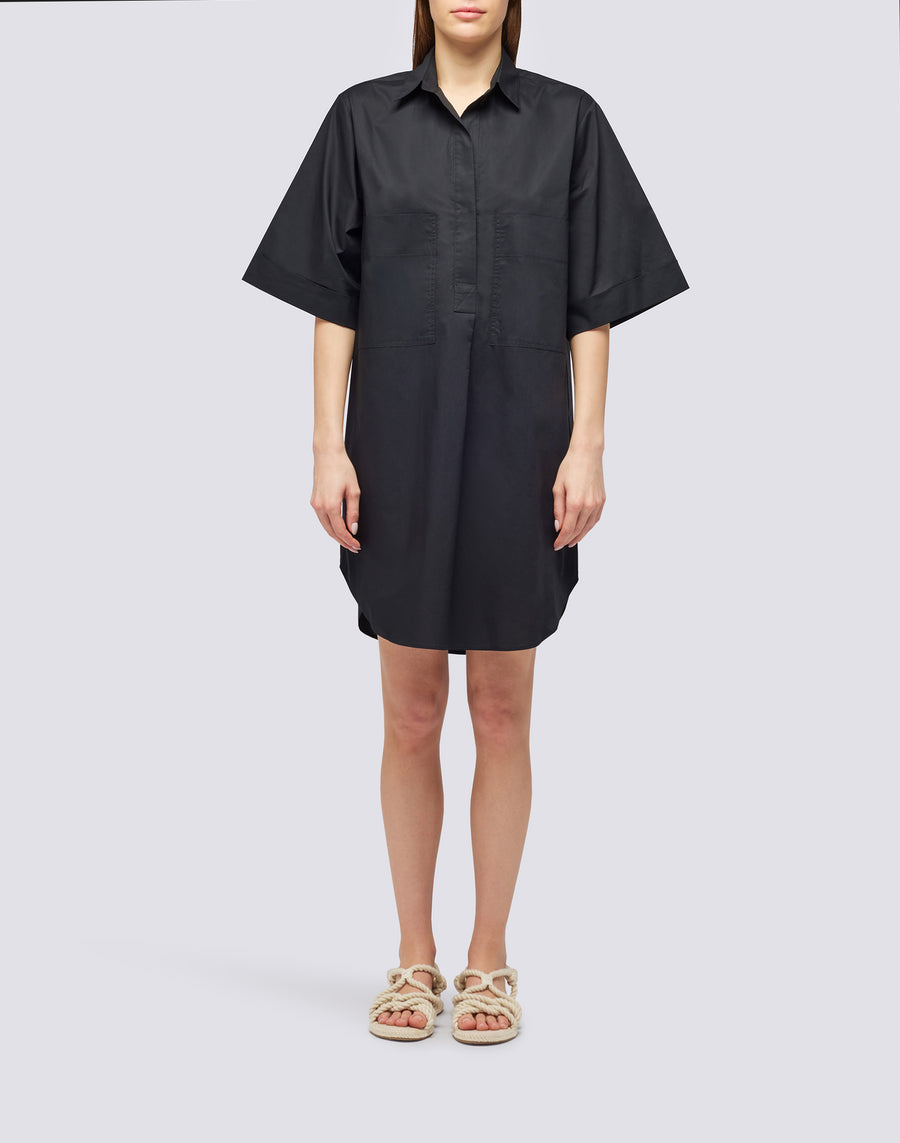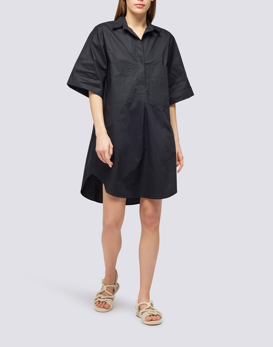 Made of fresh and light fabric, this linear-shaped cotton poplin dress will make you feel comfortable without sacrificing style.