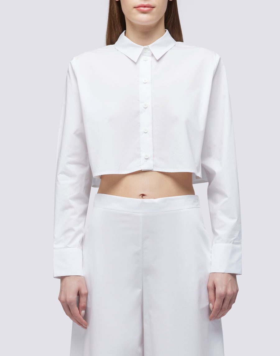Made of soft cotton poplin, this crop shirt with long sleeves is perfect for any occasion. Create a sophisticated, feminine look that fits your unique style.