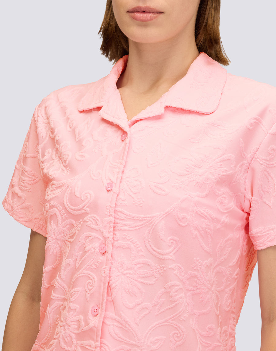 Women's jacquard terry bowling shirt with SK23 pattern, ideal for pairing with bikini sets and shorts from the same range to create colourful and unique looks.