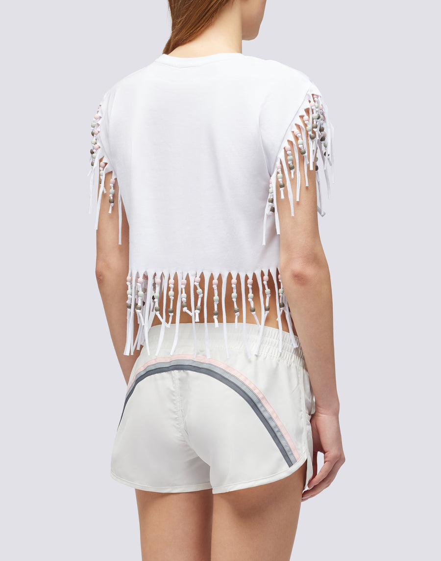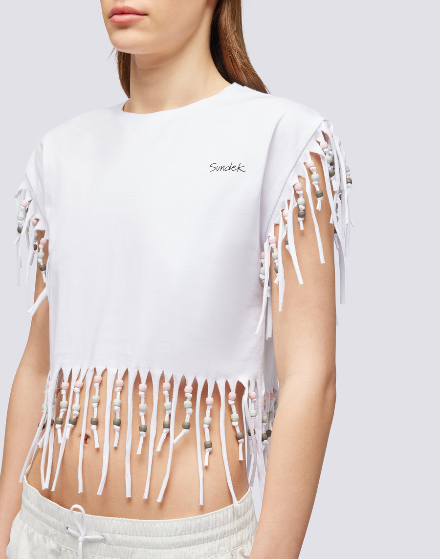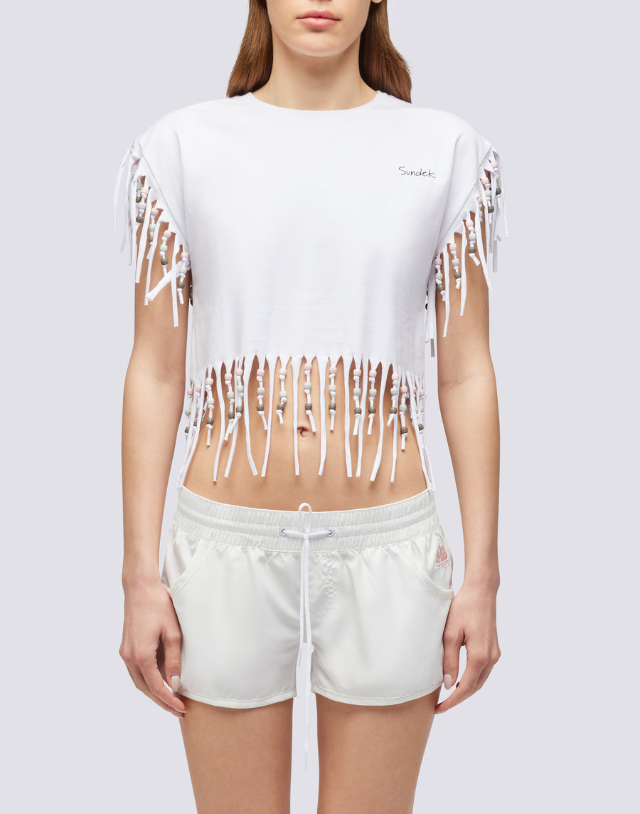 Perfect for those who love a super informal beach look, this women's fringed tank top is the ideal garment for summer days. Versatile and trendy, it is ideal when combined over a bikini.