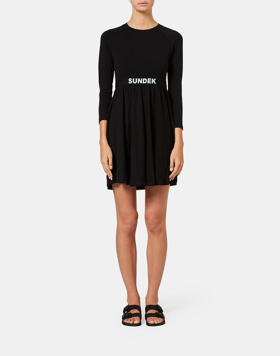A slightly flared mini dress designed for everyday wear and countless occasions. The casual design of this mini dress is finished with a jacquard waistband with contrasting Sundek logos: a great option to wear all season long, paired with sandals or train
