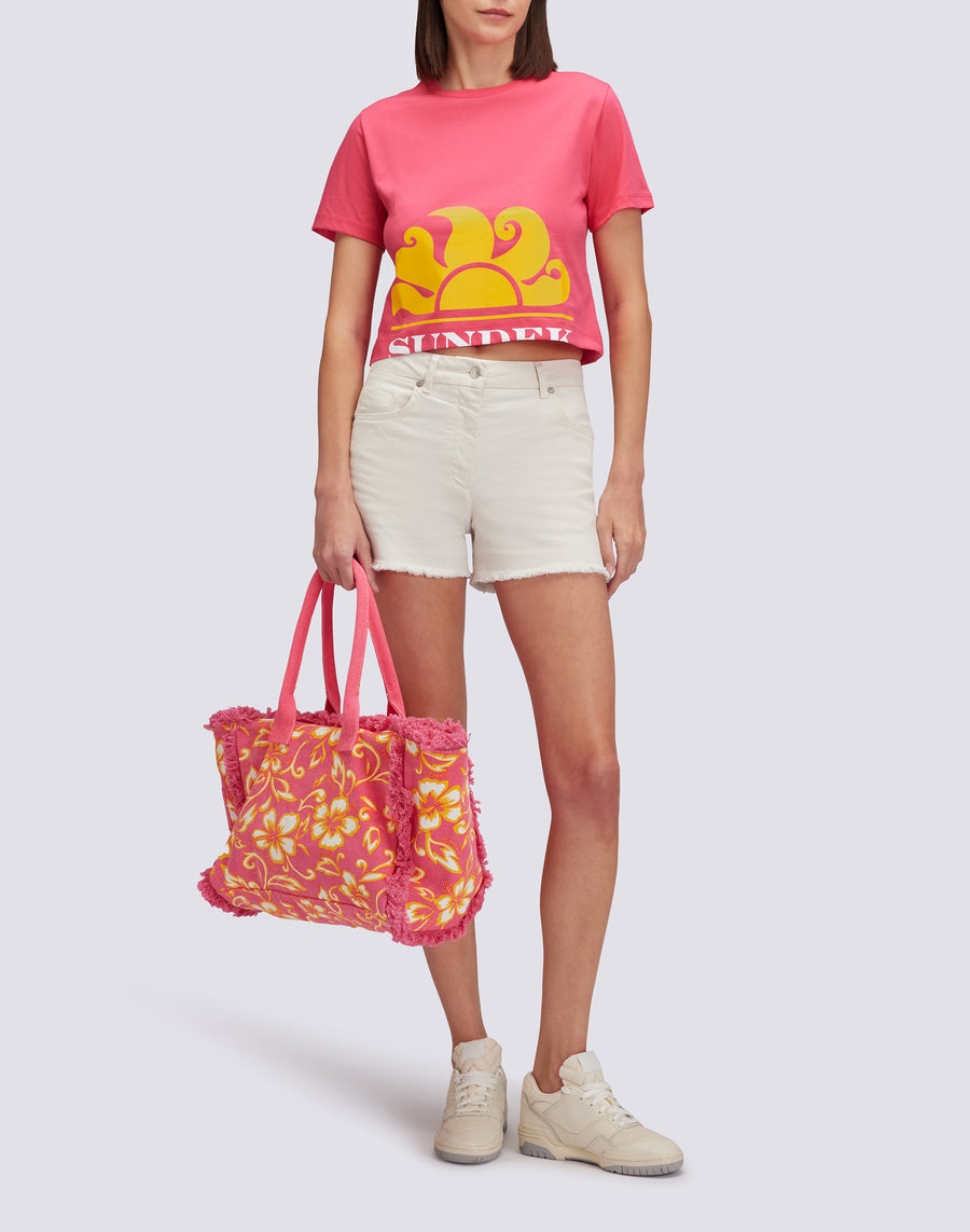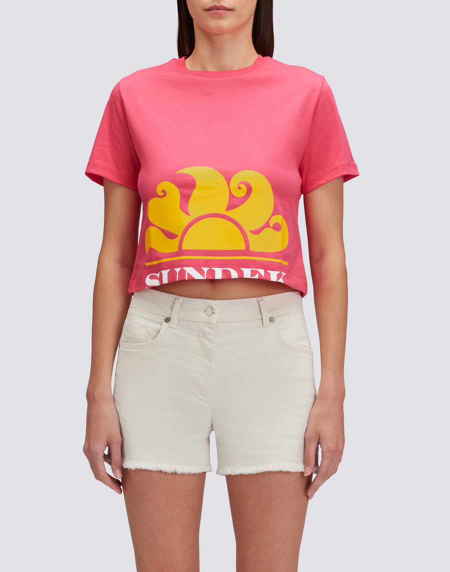 Cropped women's t-shirt to wear over jeans or skirts. An essential item for your Spring Summer outfits.