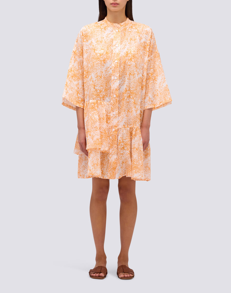 Create a romantic and floral look with this Fleur de Joie print dress. The bright colors and lightweight fabric will make you feel comfortable. Perfect for a special occasion or a casual day.