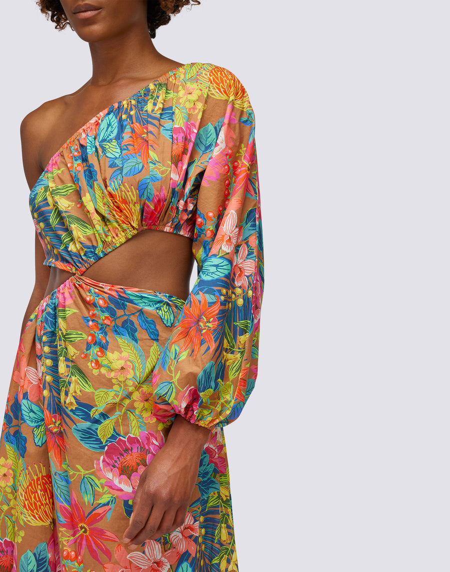 ONE-SHOULDER DRESS WITH CUT ON ONE SIDE AND WILD GARDEN PRINT
