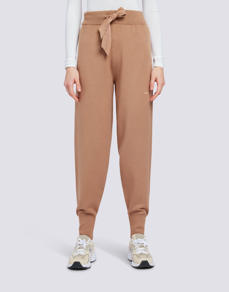 Women's plain knit trousers with elasticated waist and drawstring. To be combined with the matching sweatshirt for a casual yet trendy look.