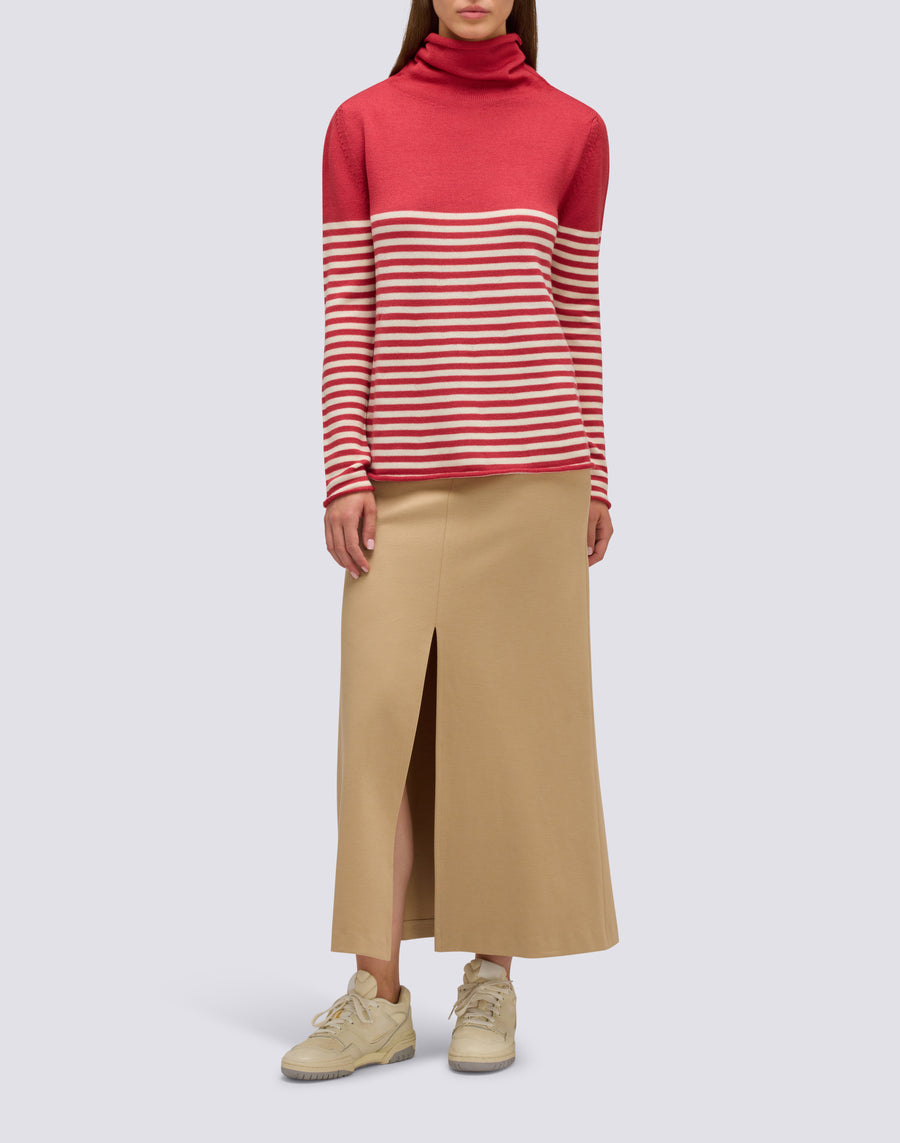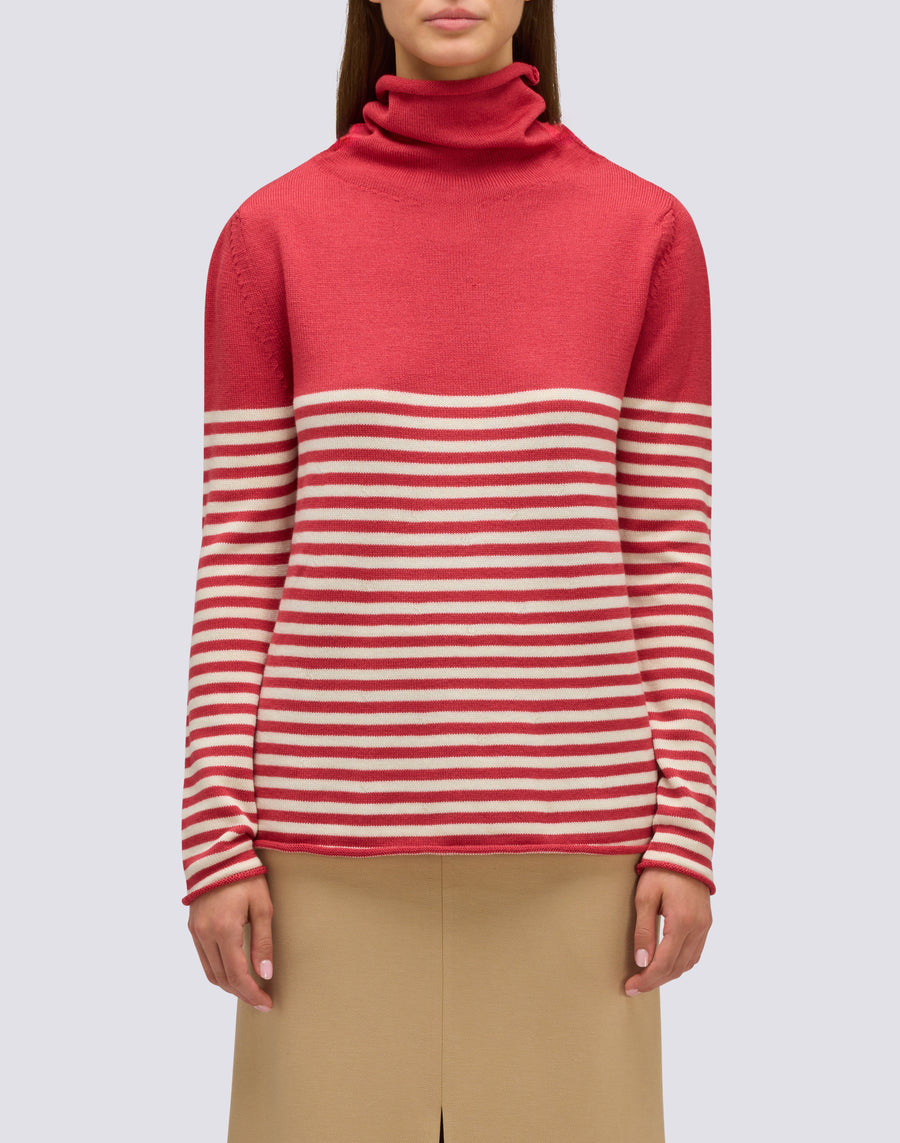 This women's merino wool turtleneck sweater offers warmth and style for any occasion. The striped detail adds a refined and modern touch, perfect for enhancing your look with ease and comfort.