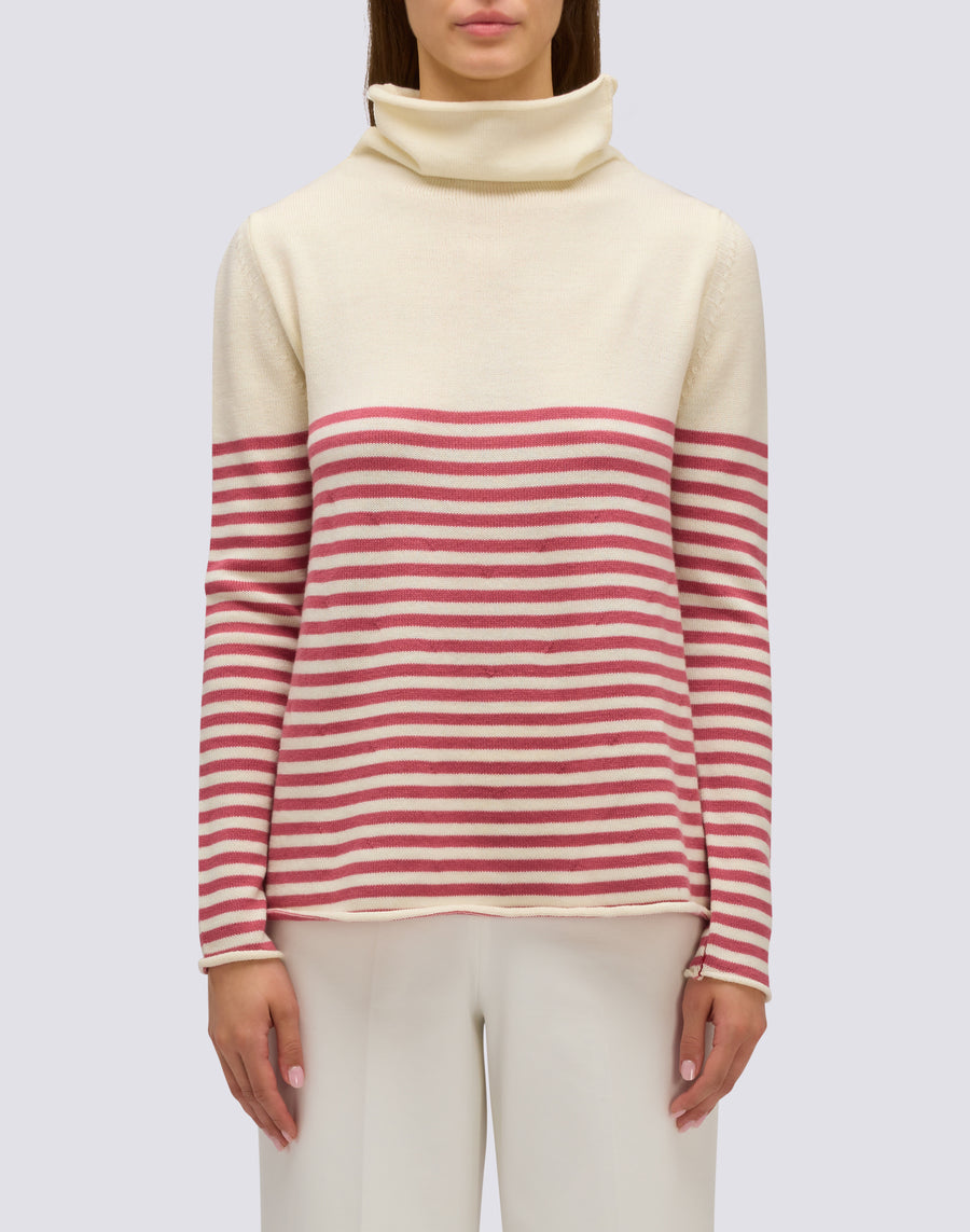 This women's merino wool turtleneck sweater offers warmth and style for any occasion. The striped detail adds a refined and modern touch, perfect for enhancing your look with ease and comfort.