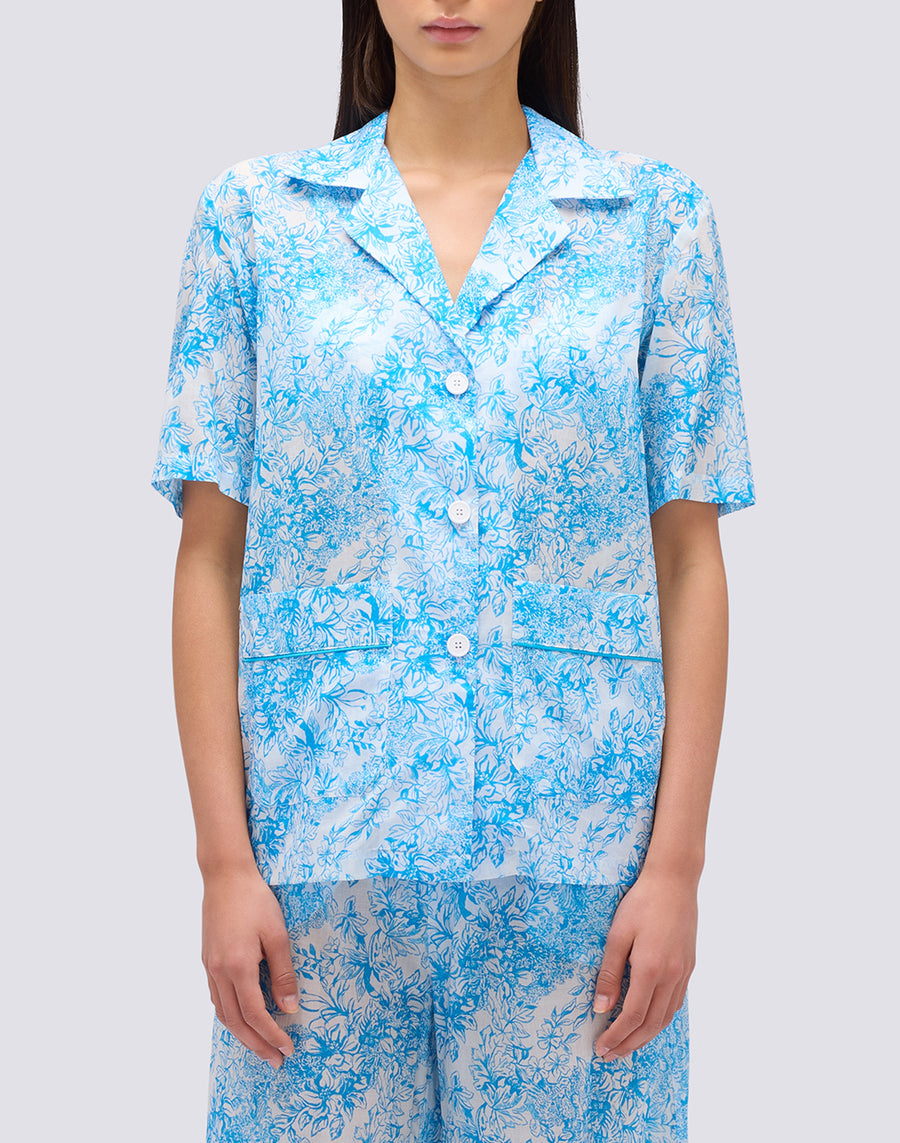 Women's shirt in Fleur De Joie pattern, to be combined with the bikinis or shorts from this collection, made in the same pattern, to create coordinated looks.